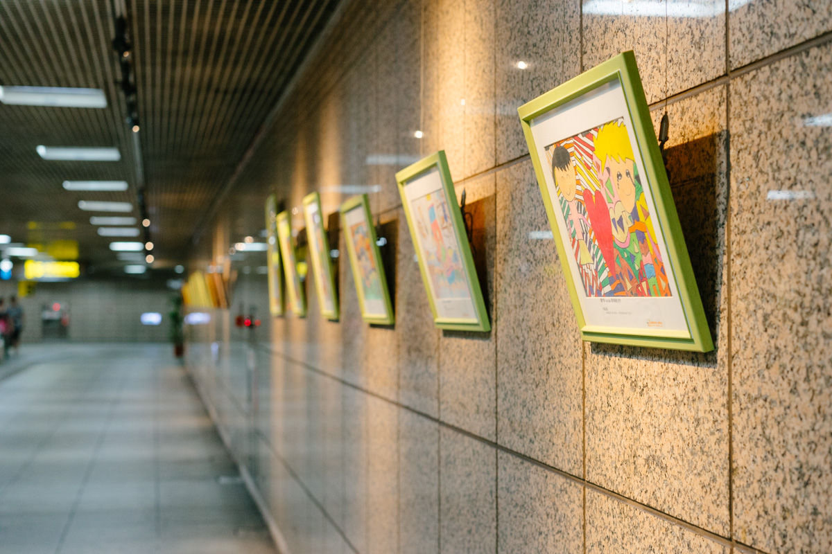 搭乘捷运来到中正纪念堂,出站的时候,在过道两边摆放的是小朋友的各式温馨的画作。尤其是在之后走过北京,上海,广州,更是觉得台湾这个地方这股子温情的感觉,充斥在城市的每一个角落。相比之下,大陆还多时候看到的都是“没有共产党就没有新中国”等宣传画。