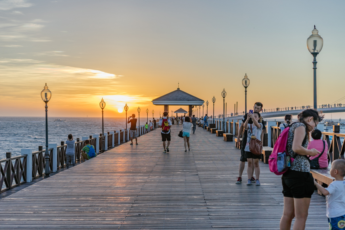 上桥,风大的让人崩溃,我这80多公斤的体重愣是有站不住的感觉。最后再看一眼情人桥,下一站,回士林,去夜市。