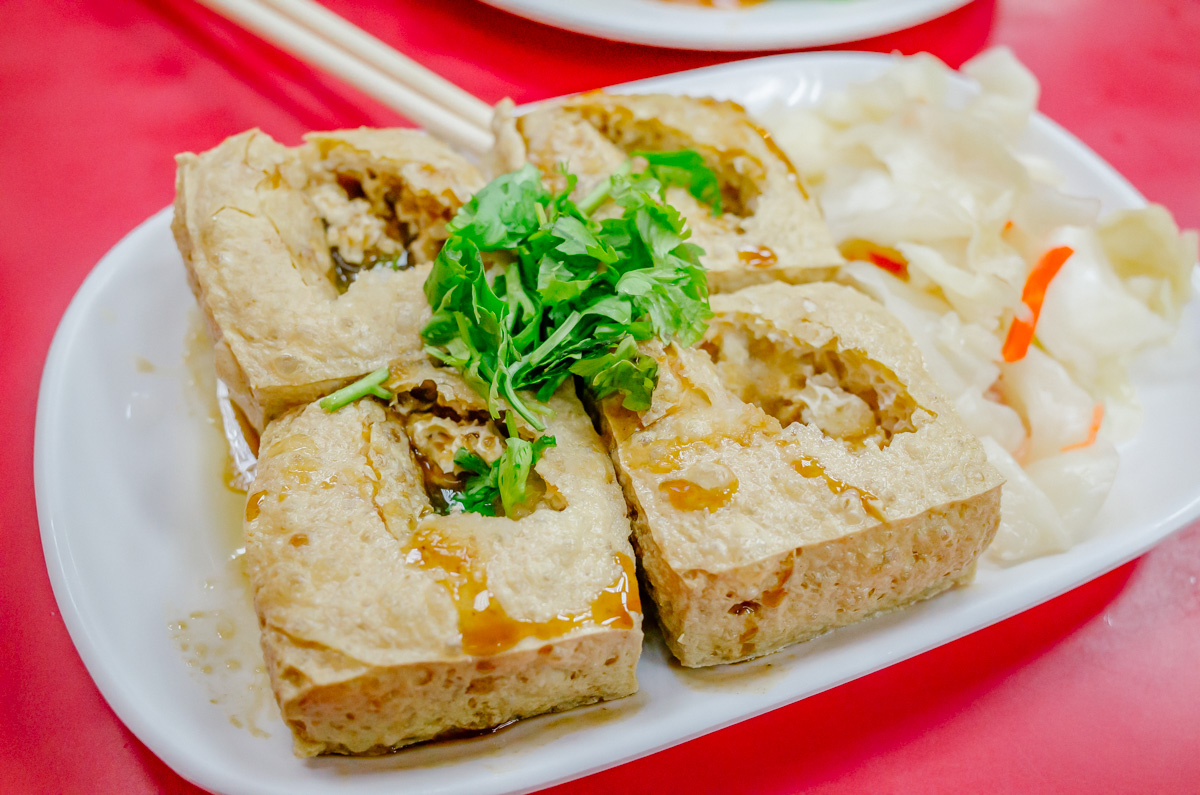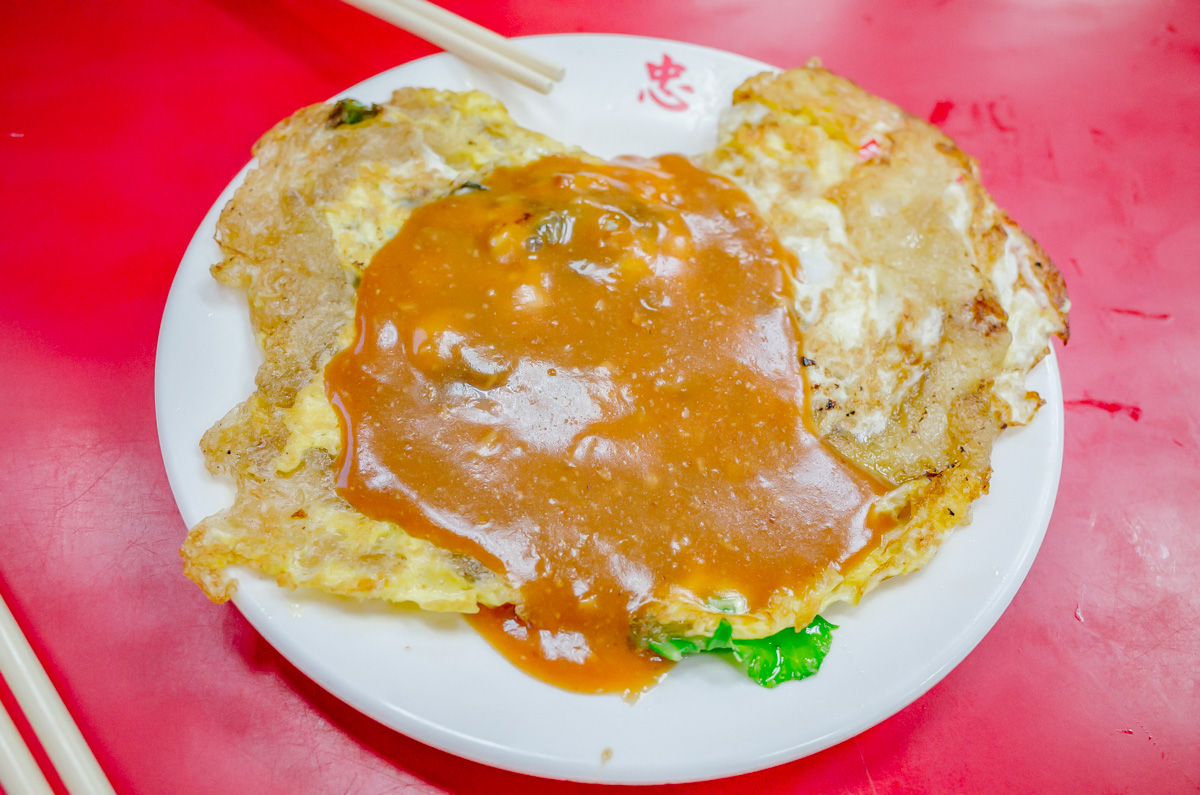 中间还吃了蜂蜜苦瓜汁,有点小名气的木瓜牛奶等。不过味道确实一般我连照片都懒得拍……最后吃的是这家,著名的忠诚号蚵仔煎。臭豆腐还不错吃,炸得比较脆,配上酸菜感觉不错