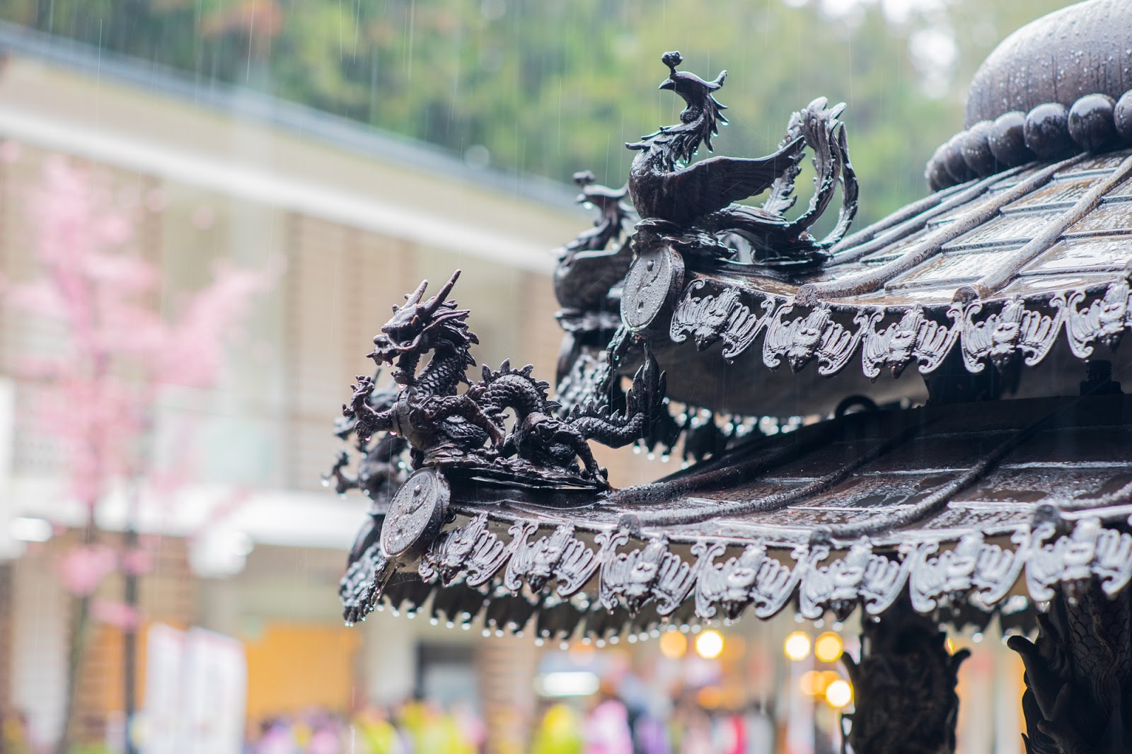 因为下雨的原因,我们躲在游客中心的旁边的寺庙里等雨变小。