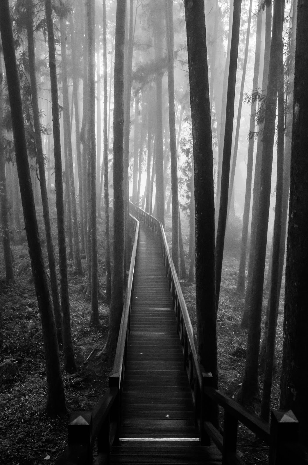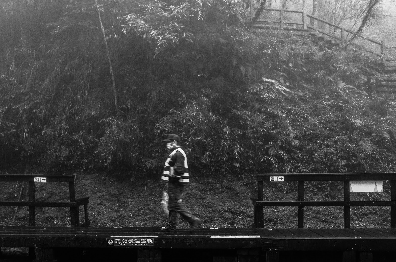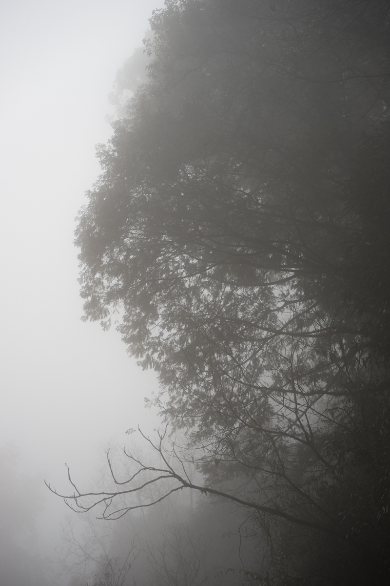 雨水下起来那真是没完没了。等到雨势渐止,我们也迈开脚步进山而去。台湾好像不管下不下雨,山区都是一片雾蒙蒙的,对于拍照来说简直就是噩梦。