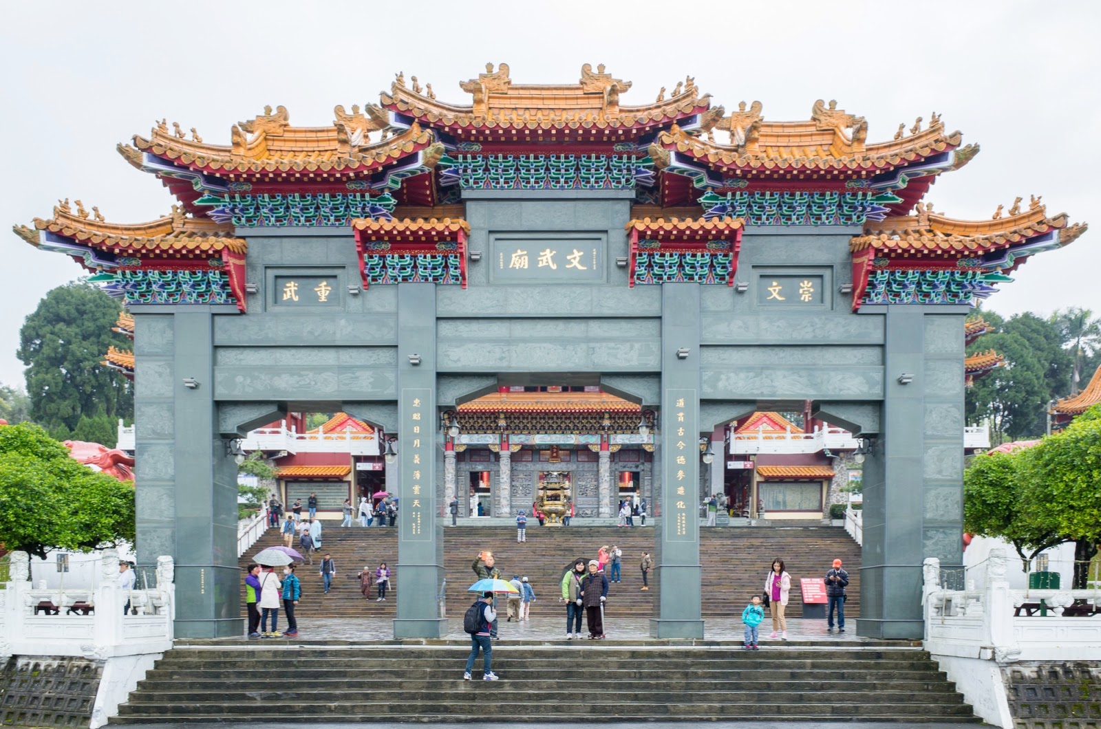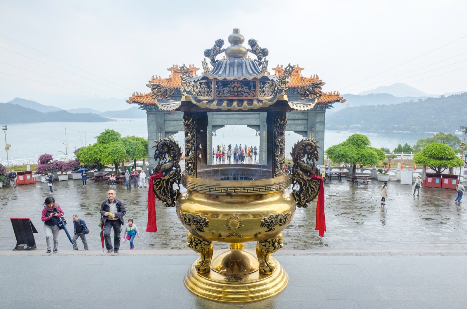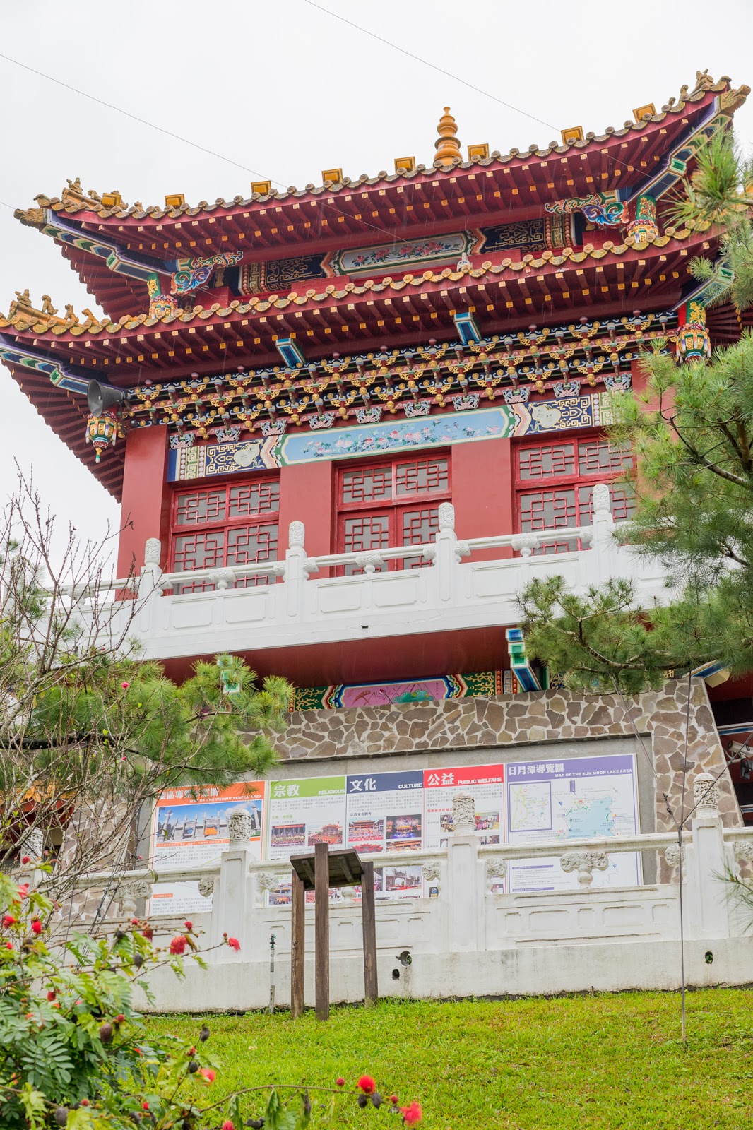 第一站就来到了文武庙,在庙门口有一块写着日月潭三个字的大石头。很多游客都来这里合影。我去的那天正好叕下雨了,躲进庙里先避避雨。