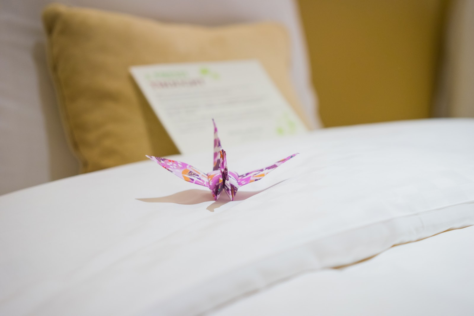 Anyway,带着队日月潭的失望,我们紧赶慢赶的搭乘高铁回台北。在酒店check in之后,看到摆在床头的千纸鹤,希望今晚的行程顺利。