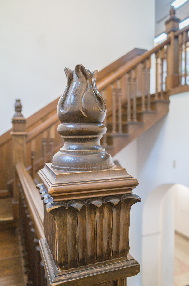 门廊的左边我们就可以通过楼梯来到楼下参观。