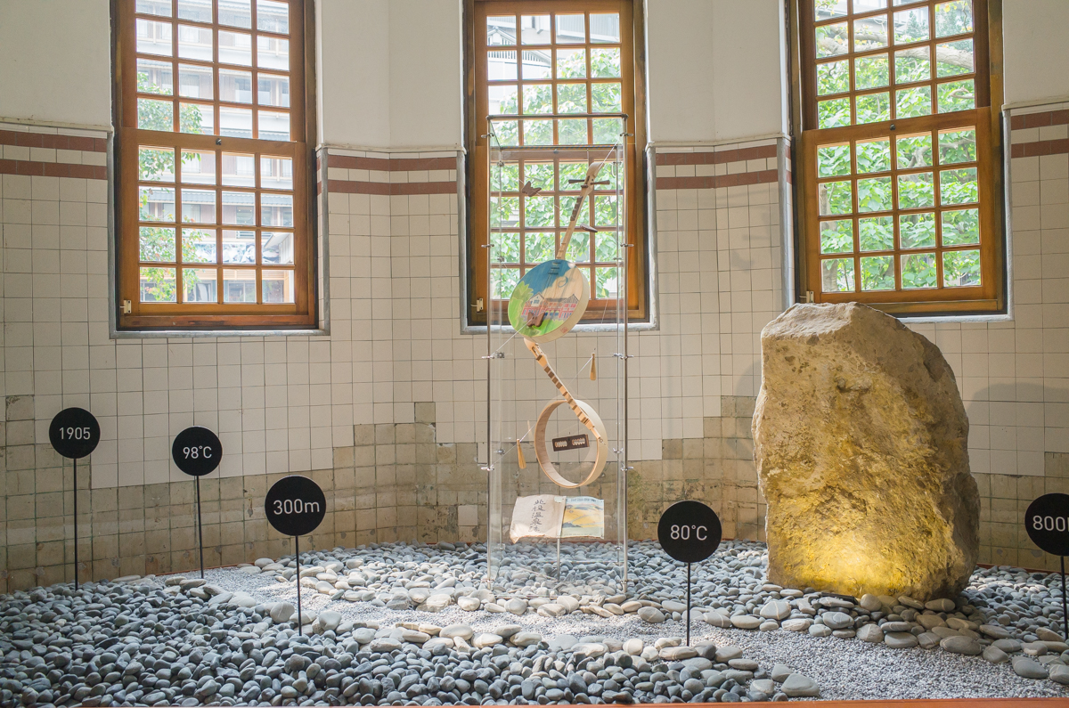 进入博物馆必须换拖鞋。服务人员多是一些台湾老大爷。他们给人的感觉很像很像日本人。当然本来北投这个地方,日本人留下的痕迹实在太多了。走入大厅,映入眼帘的是一个铺着榻榻米的大厅。大厅的右边门廊通向一个可以眺望外面的小厅。