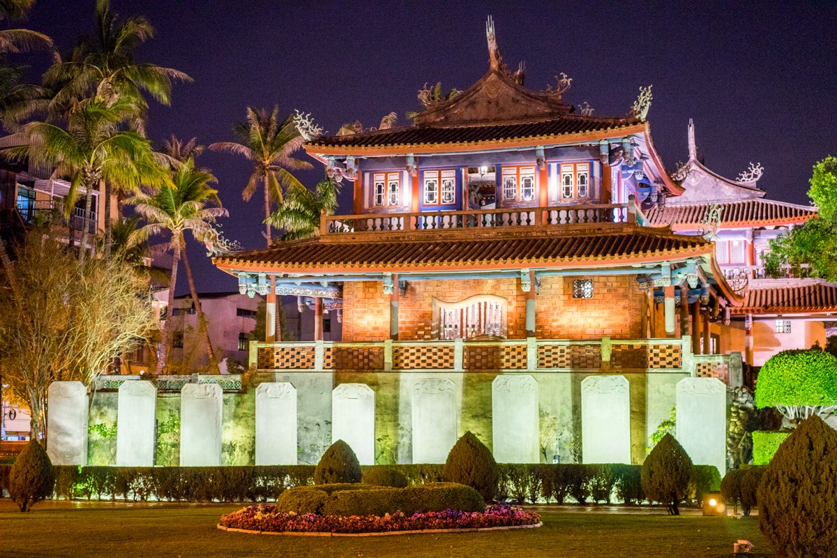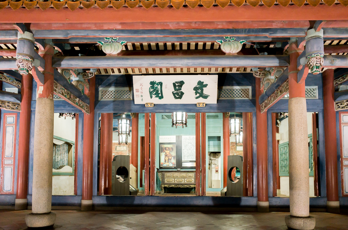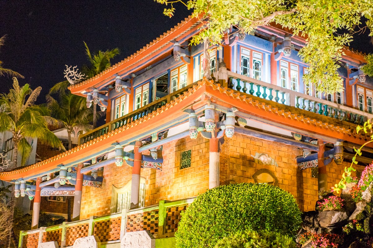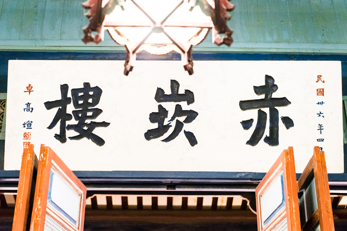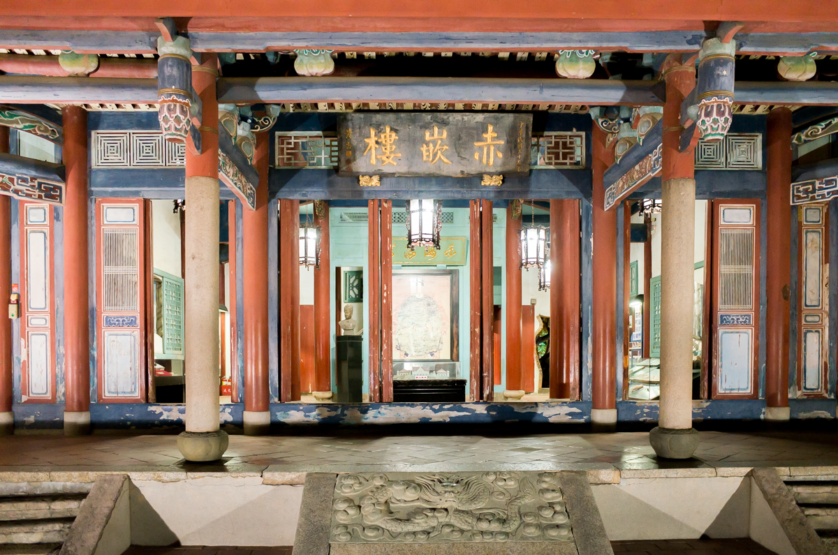 走到赤坎楼大门口我差点不想进去……老实说两幢这样的小楼,晚上也实在看不到什么。不过既来之,则进之。楼有两幢各分两层,一幢的二楼是魁星阁供奉着魁星,好多人过来敬献花篮什么祈求考的好……(忍不住吐槽,考试靠神仙不如靠作弊啦)……另外一幢楼里面是海神庙。