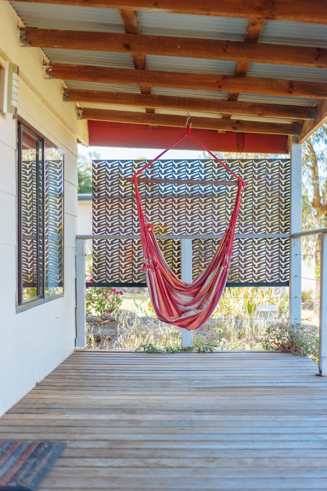对面的农场以及屋后decking的小吊床