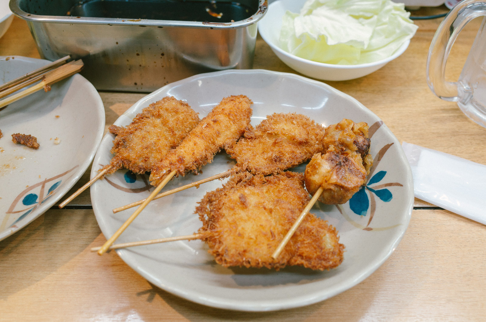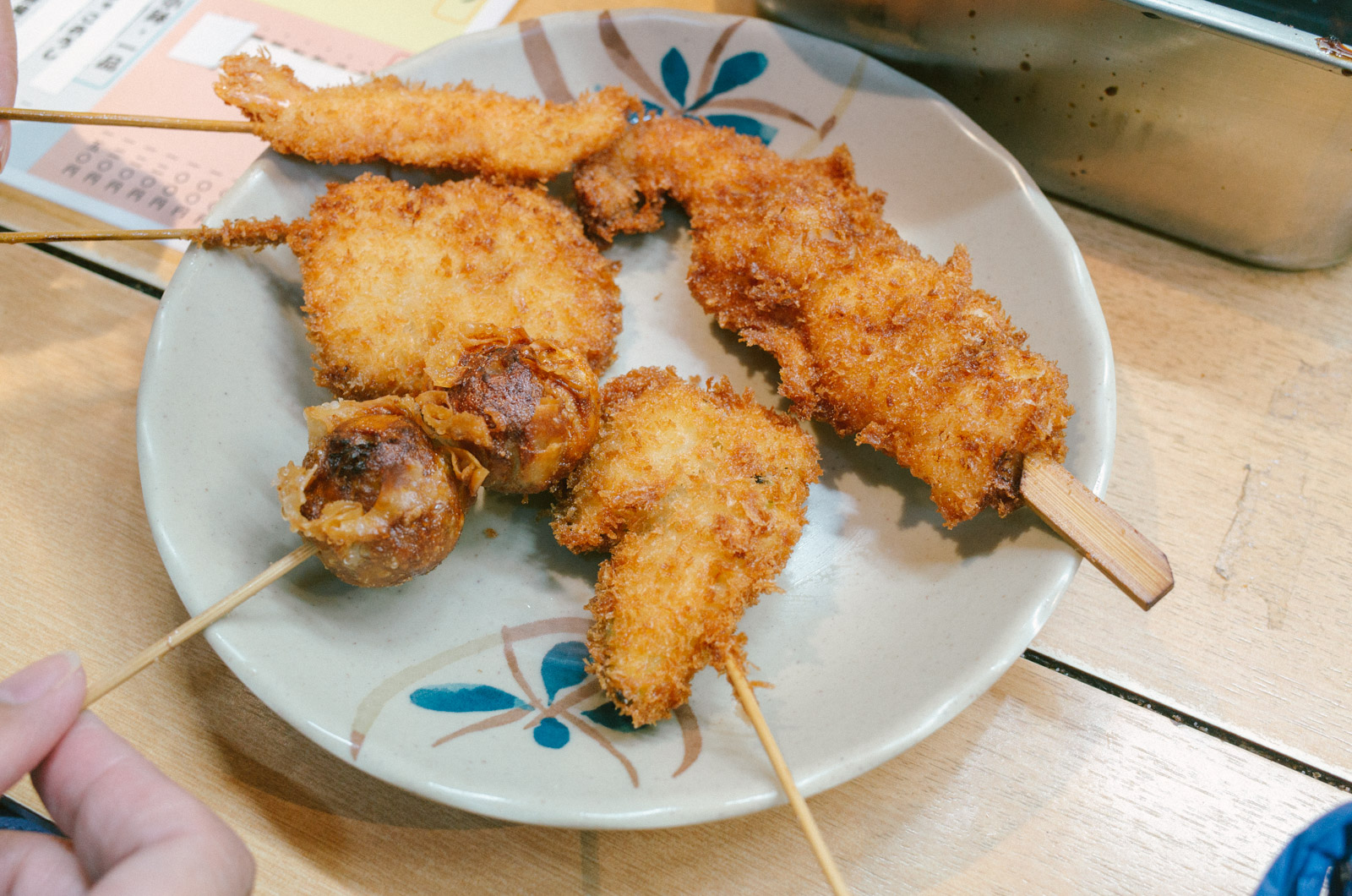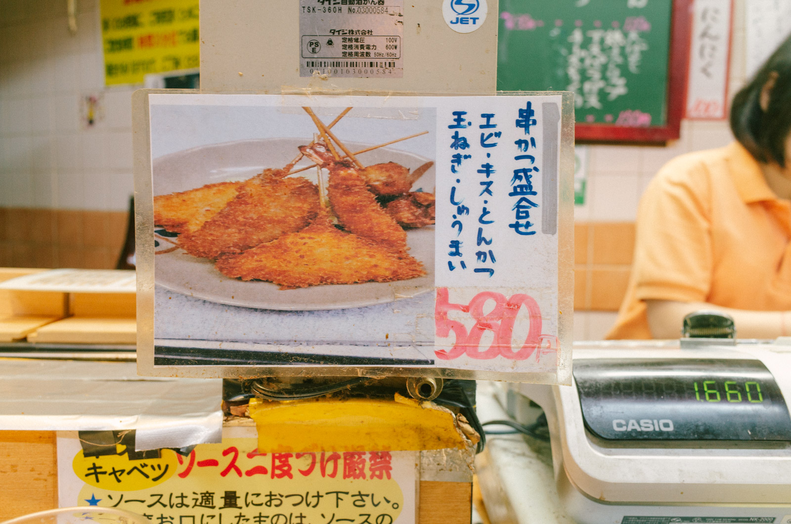 由于在日本吃东西的量都不算大。我们往酒店方向走的时候,路过一家串串店,看到人挺多的,我俩对视一眼同时停下了脚步(咱俩这吃货的心啊 :evil: )