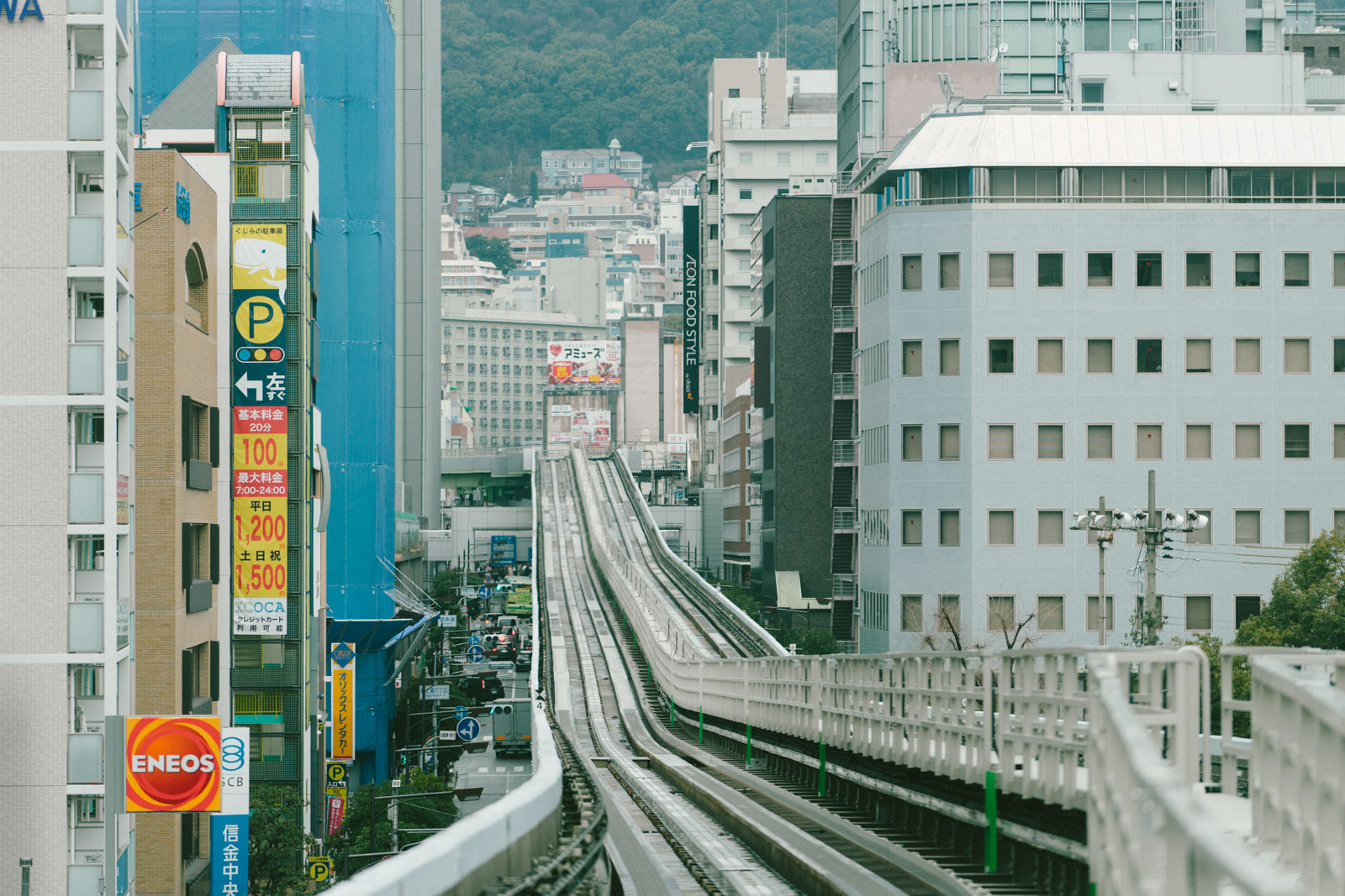 很快电车就到了市区。日本城市山和城市建筑的结合,特别是雾气笼罩的山让我有种又来到台湾的感觉。可能亚洲都这样吧?