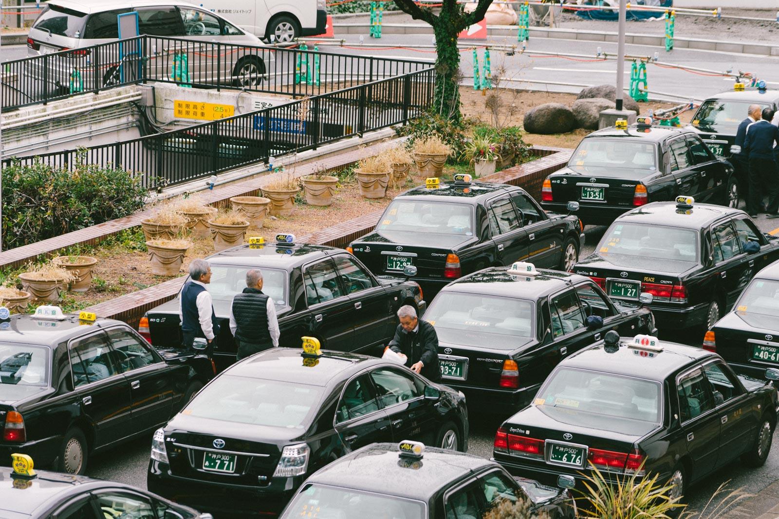 从三宫站出来首先看到的就是排列的整整齐齐的出租车。