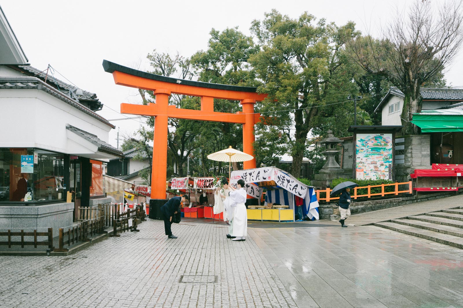因为还在下雨的缘故,路上的行人虽然不多不过也可以感觉到人流渐渐多了起来。既然我们来看鸟居的目的已经达到,我们决定下山前往下一个景点。