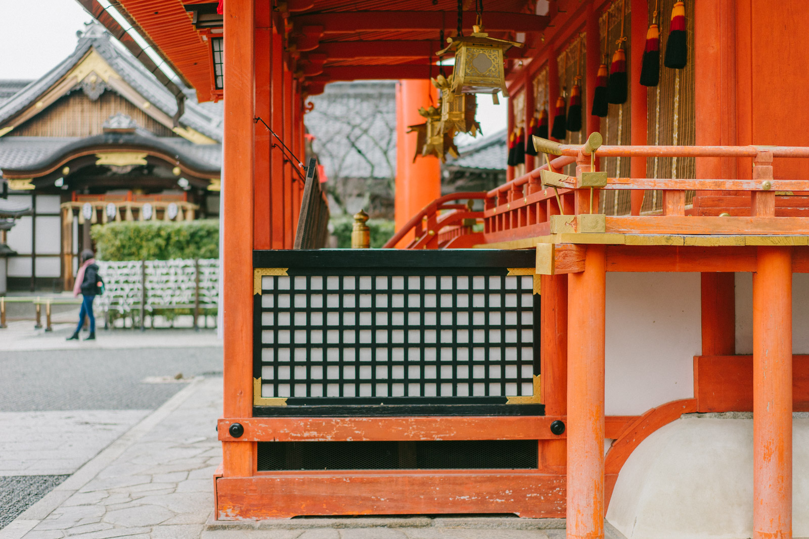 在正门口买票后我们就可以进去了,橘红色的大门,我当时就在猜测这里的建筑风格应该跟清水寺类似