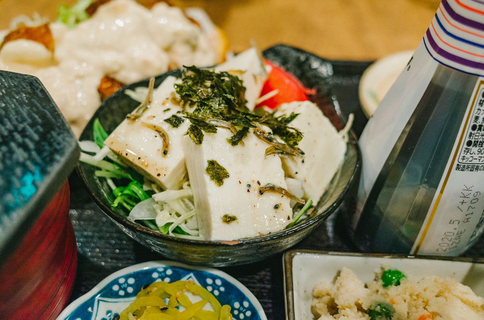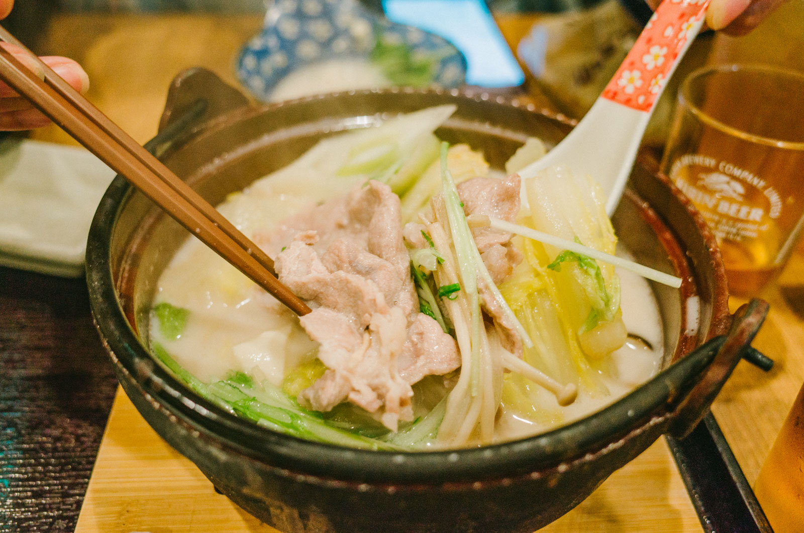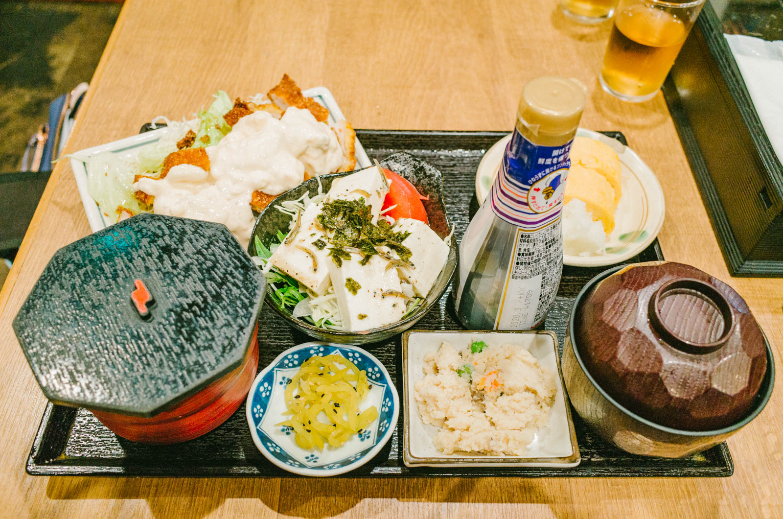 逛了大概一个小时,看了看时间已经是晚上8点多了,我们下午在京都吃的一兰也已经消化的差不多了。我们来到了媳妇早就找好的“普通食堂“”吃个晚饭。我吃的炸鸡套餐,媳妇吃的豆腐汤。炸鸡味道还不错,套餐中其他的一般。不过它家的豆腐汤真的是好喝,强力推荐一下。
