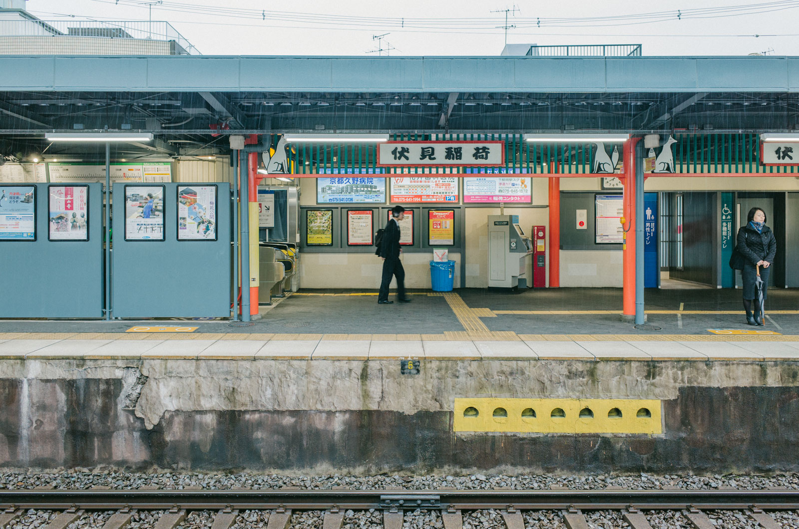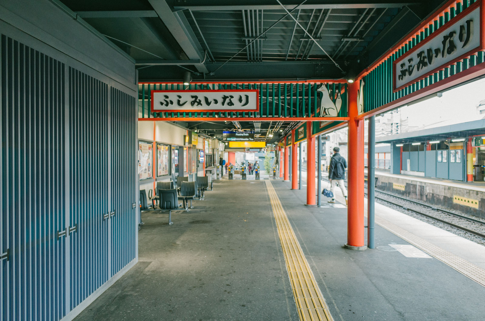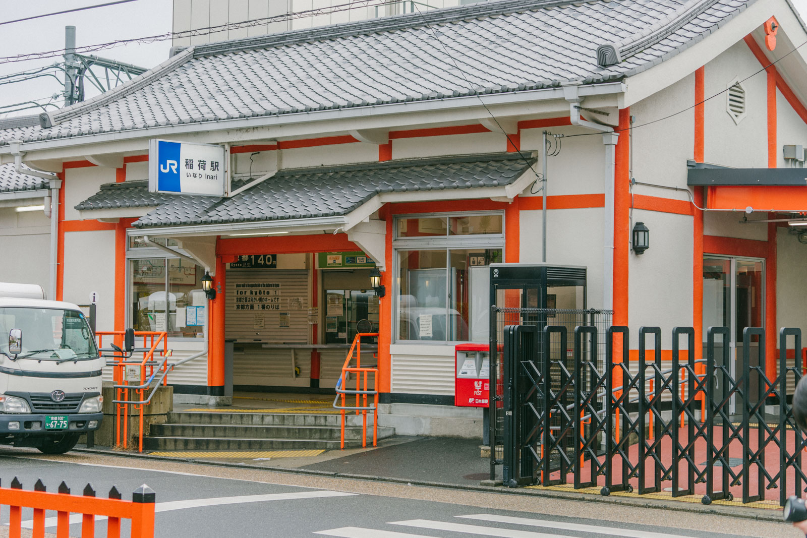 用来时乘坐的私营的Keihan铁路车站对比一下国营的JR的稻荷站,看的出来JR作为国企在建设风格上努力想要与本地结合但还放不开手脚的感觉。