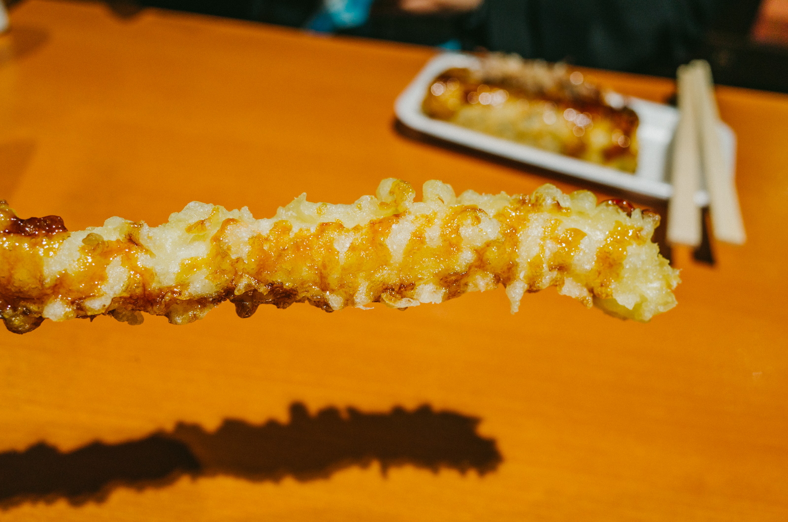 锦市场里面自然也会有吃的。天妇罗和这个不知道是什么的味道还不错……
