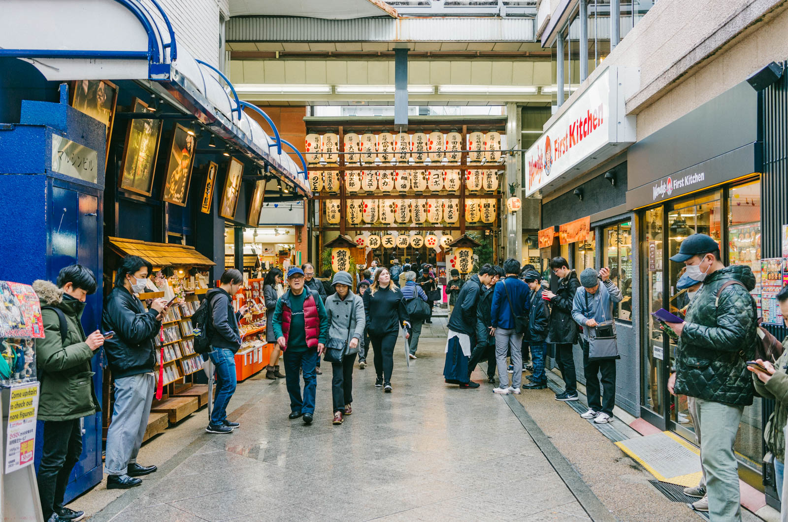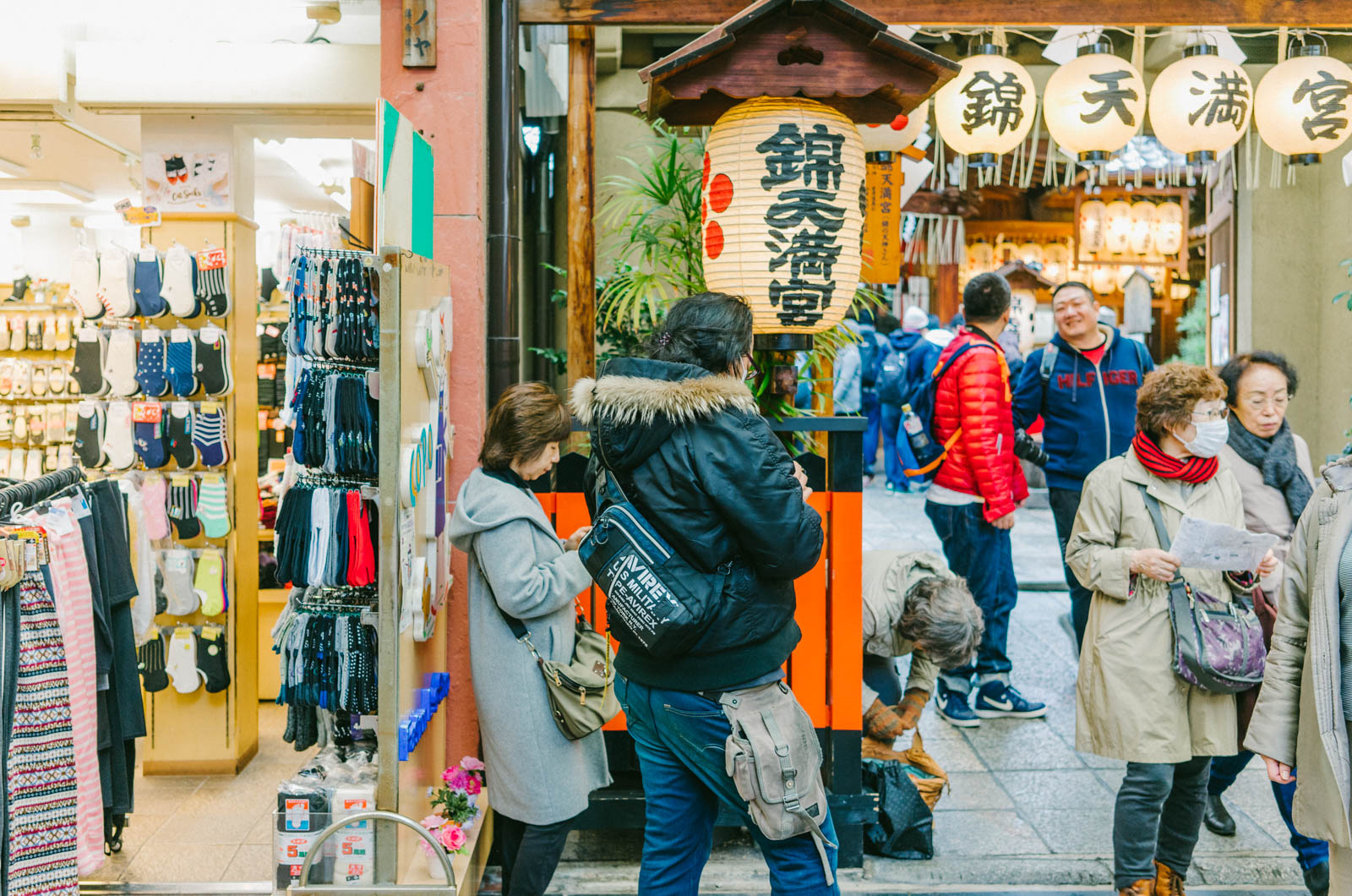 回酒店的途中我们路过锦市场,来了当然要逛逛。锦市场是一个特别大的步行商业街,锦天满宫就坐落在这条商业街里面。我们在门口看到好多人拿着手机以为他们在等着进去,后来发现他们不停地在滑手机我们才明白它们都在玩Pokemon。人群中不乏一些上了年纪的人,看来沉迷游戏并不是年轻人的专利。