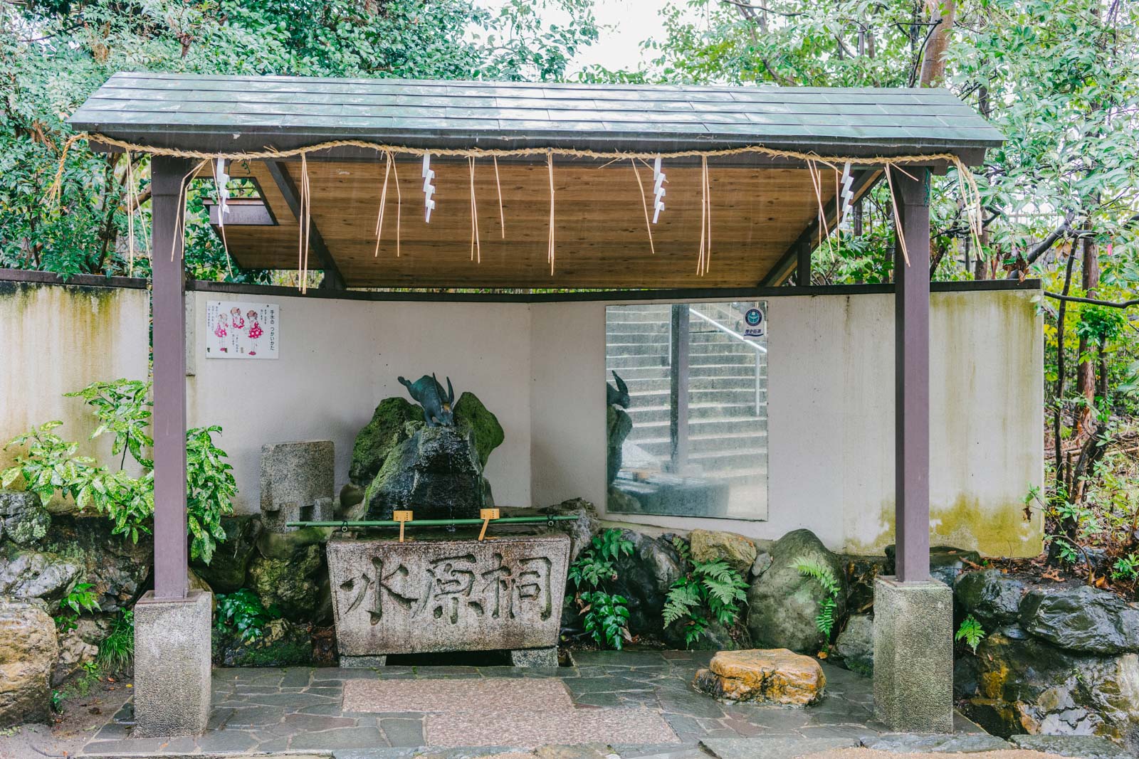 神社前的桐原水因为菟道稚郎子和兔子的故事而出名
