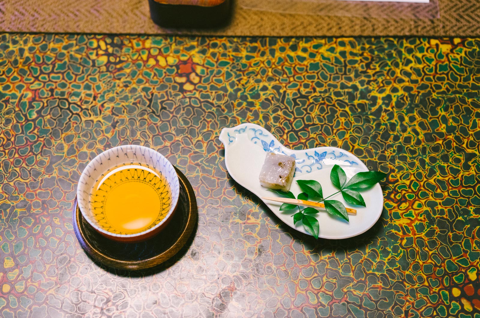 Mr Yabusu在给我们介绍酒店设施和询问晚餐时间的时候,酒店送来了茶水和点心。