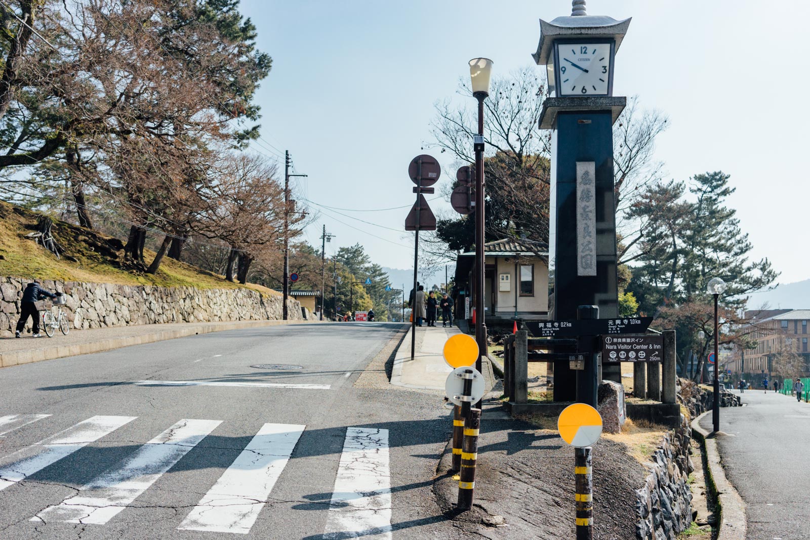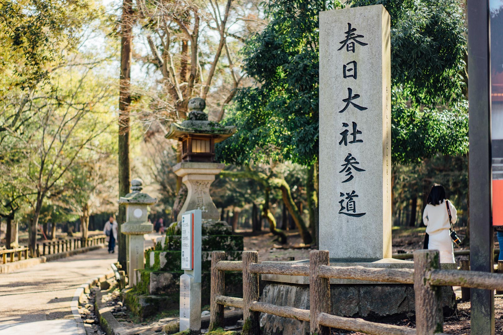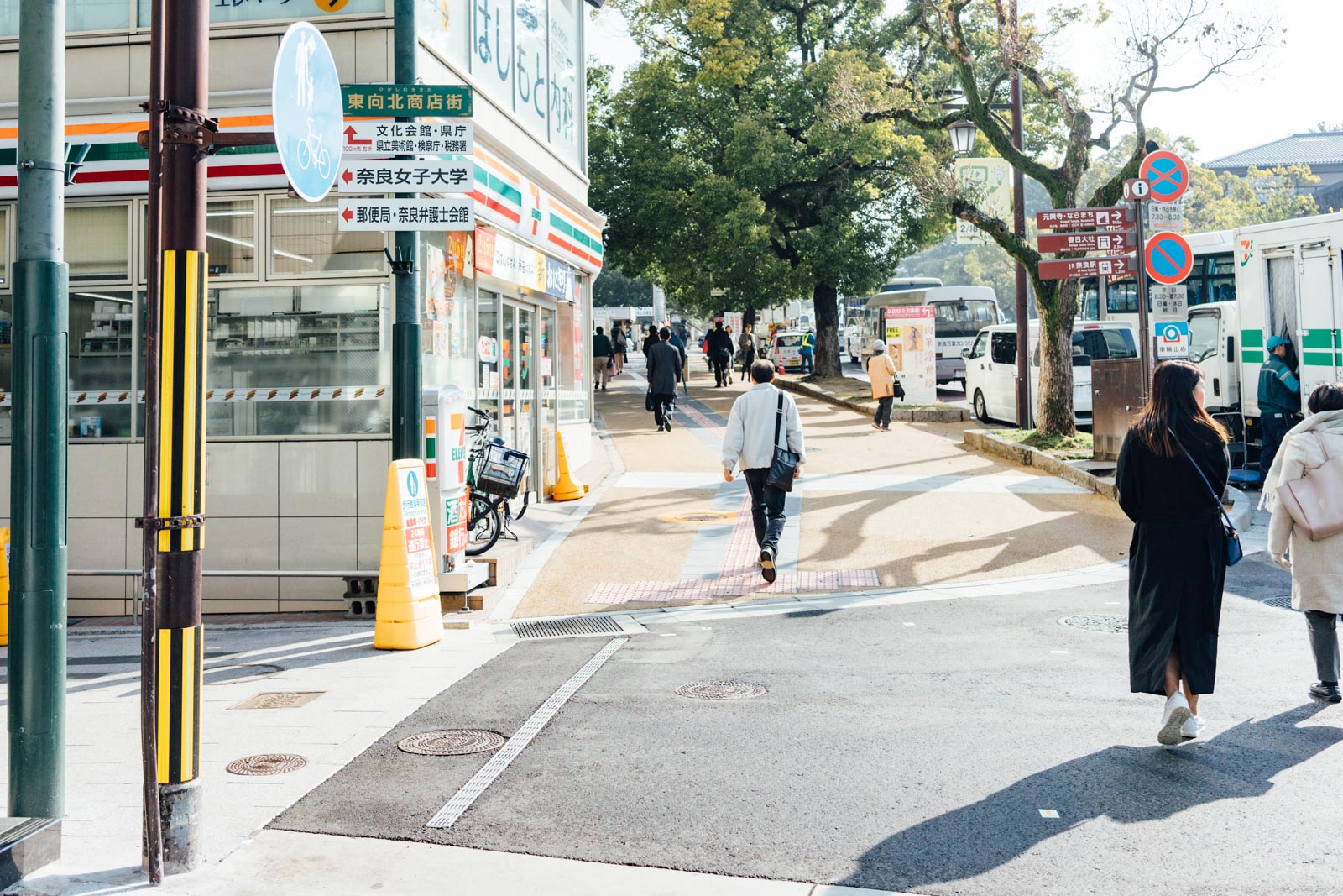 在车站里面我们很难分的清楚哪个出口离我们要去的地方最近。出来之后看好路牌,我们往春日大社的方向走。