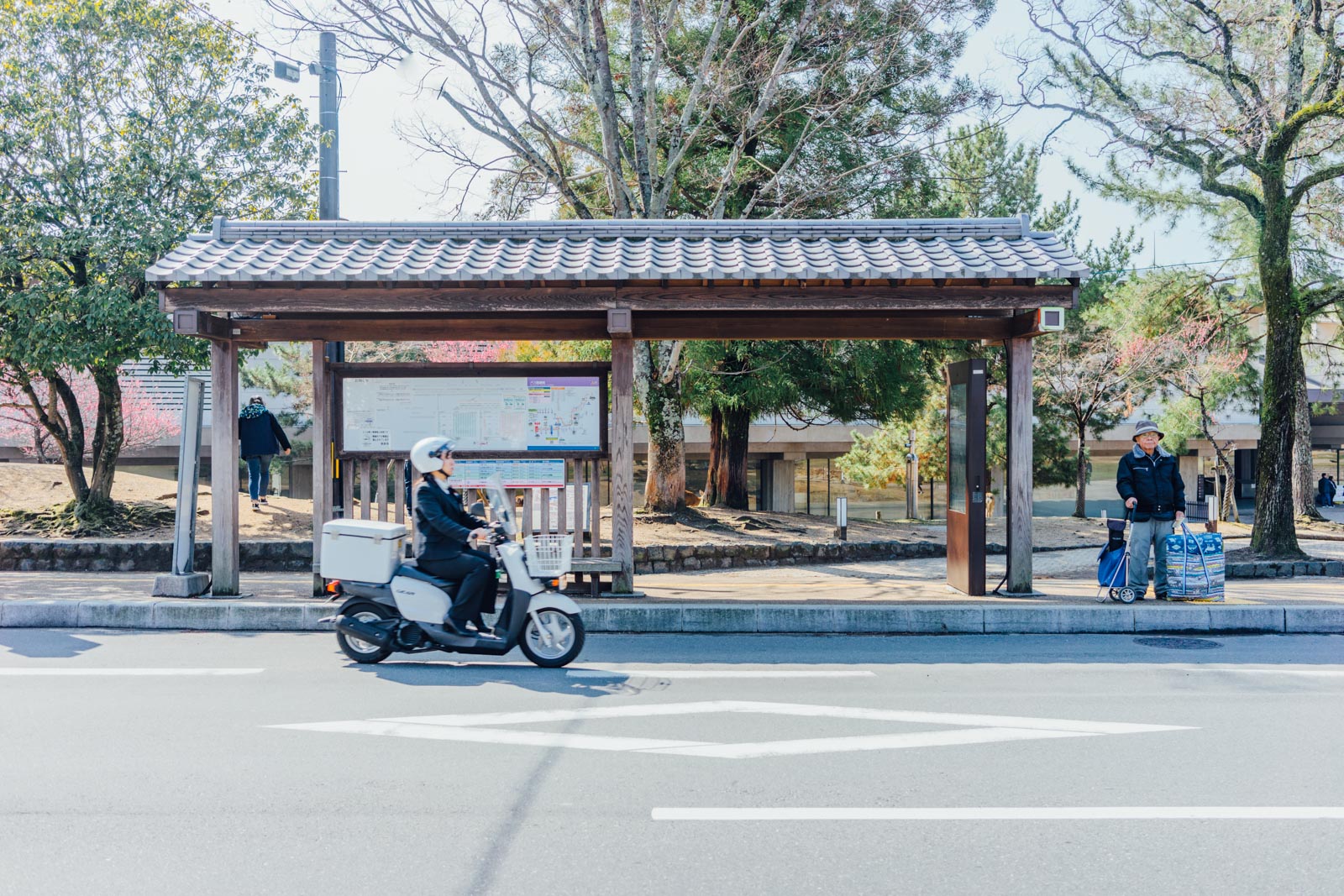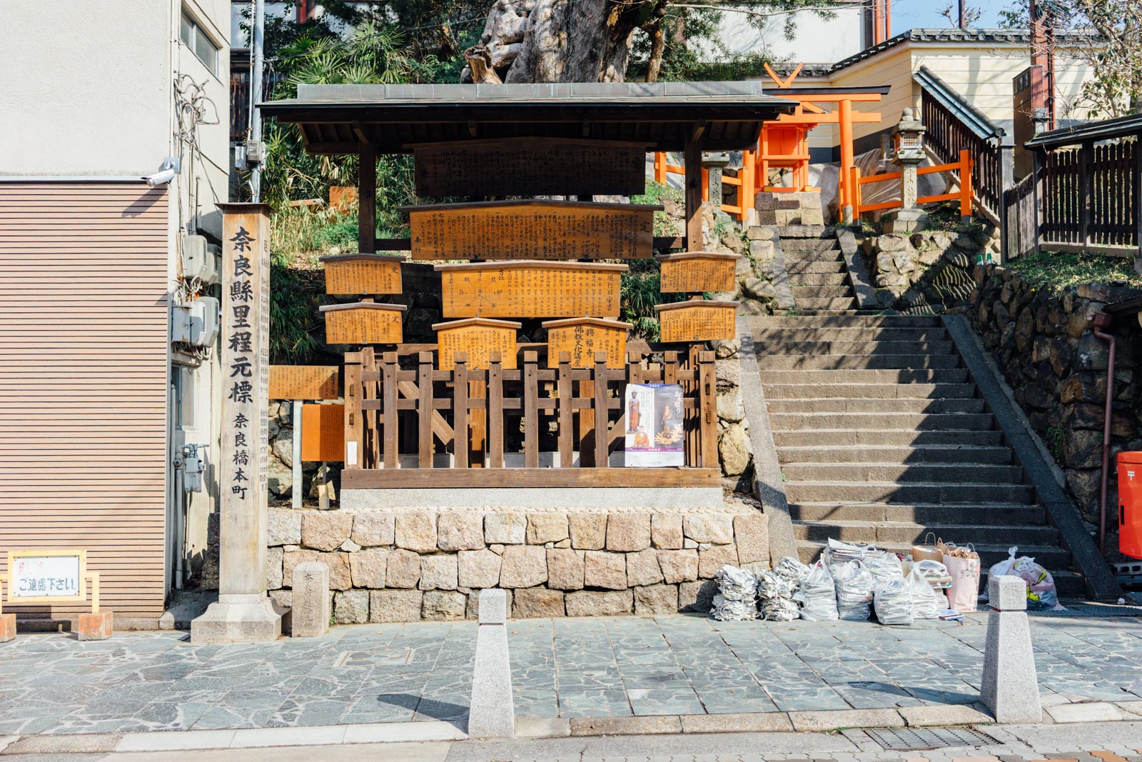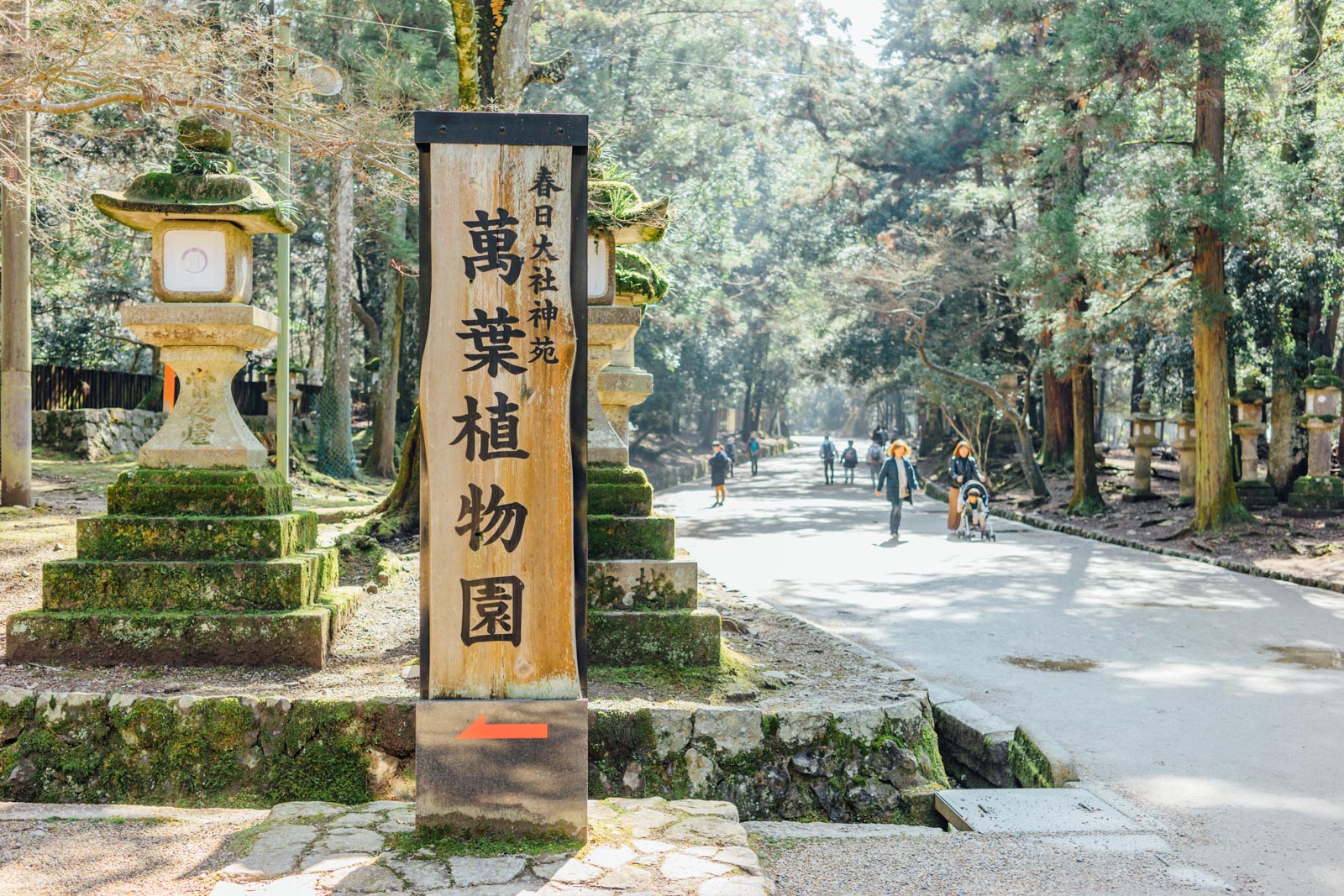 在车站里面我们很难分的清楚哪个出口离我们要去的地方最近。出来之后看好路牌,我们往春日大社的方向走。