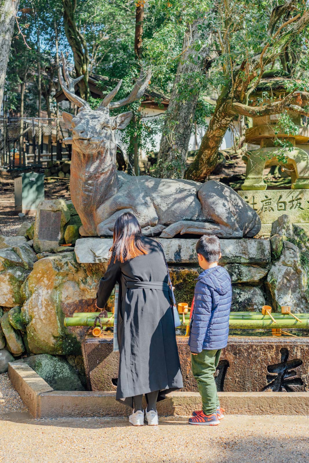 猛拍了不少他们俩的照片之后,媳妇说我们还是抓紧去春日大社吧,这些小景点留着回程的时候有时间再说。这只小鹿还蛮乖的,目送我们离开