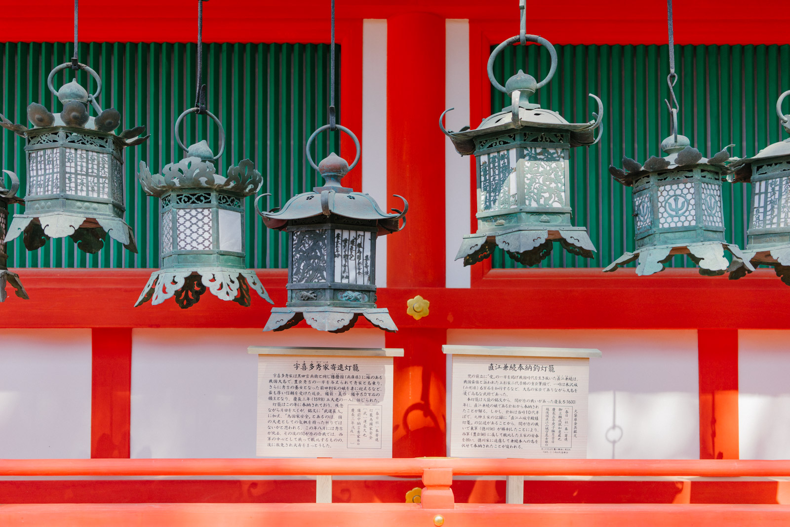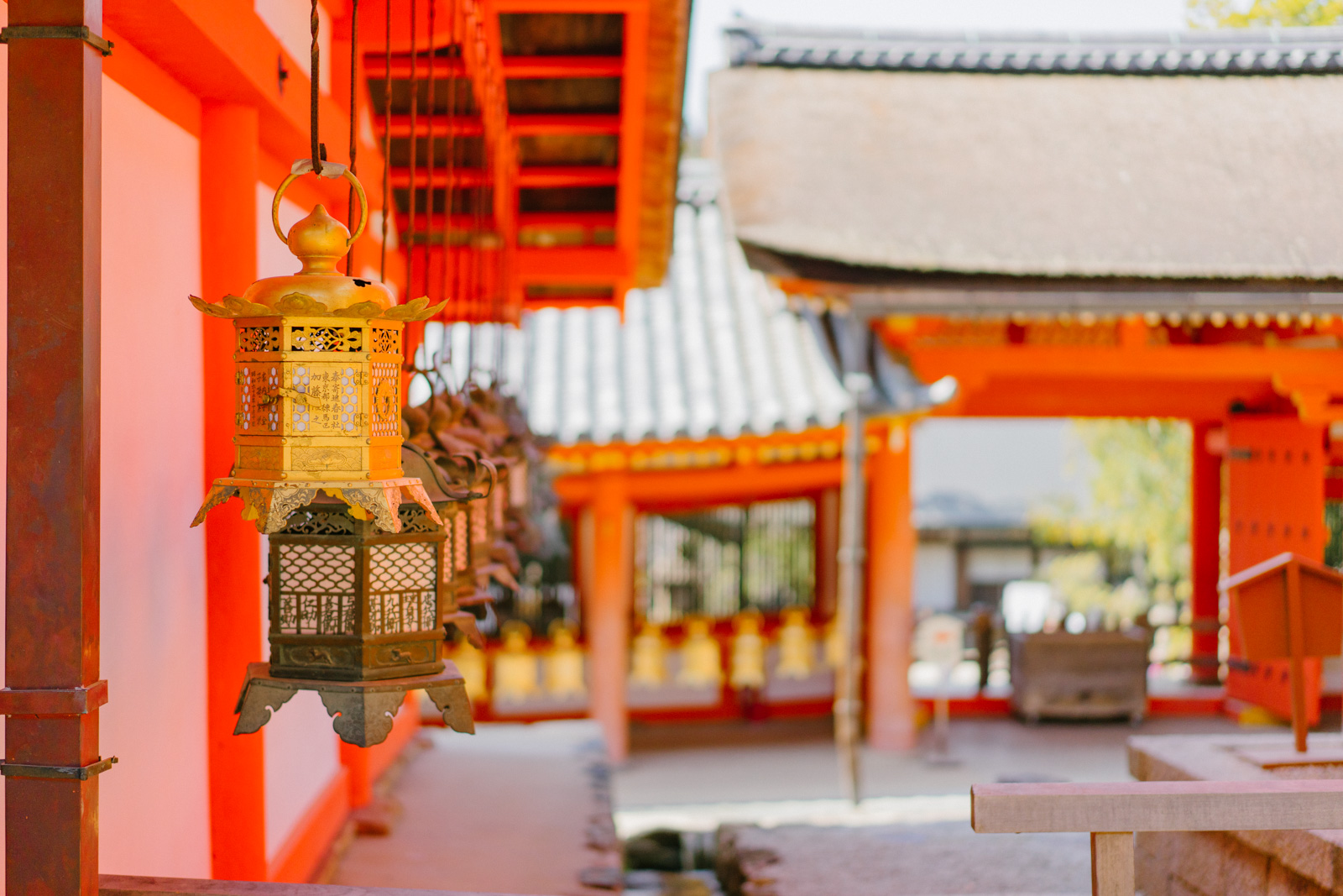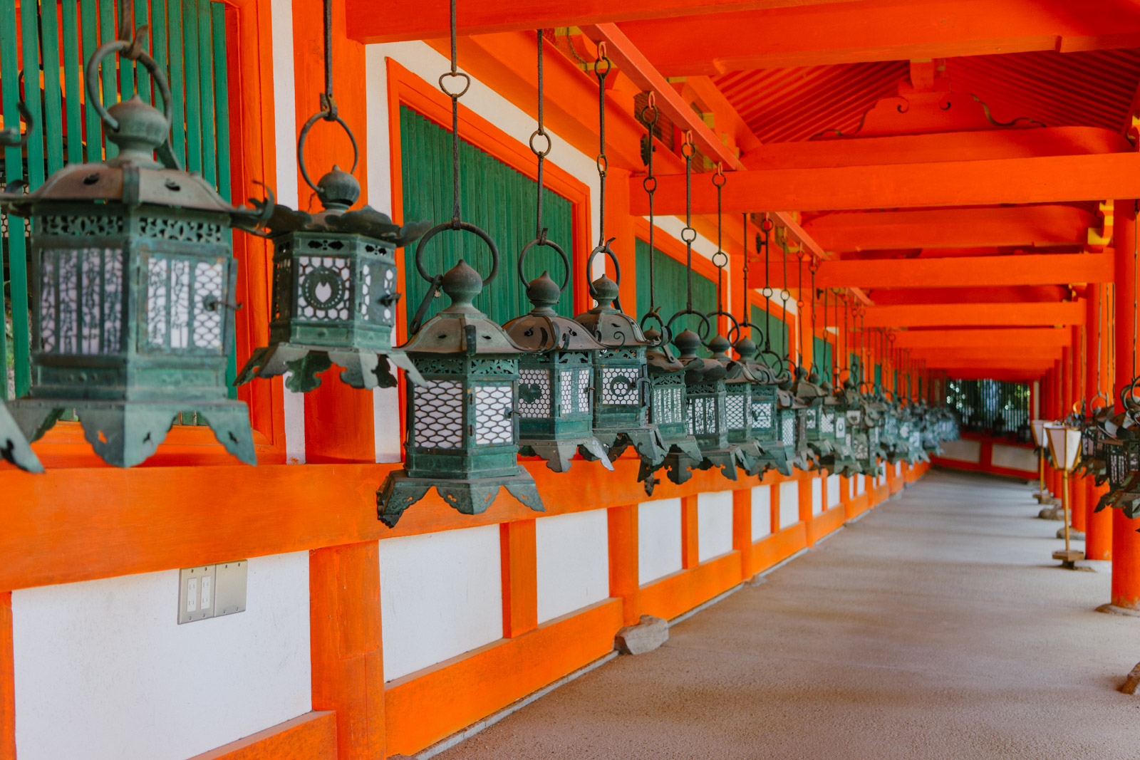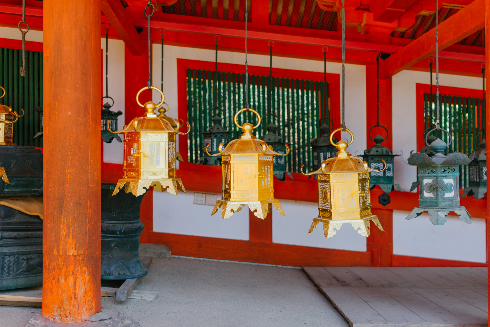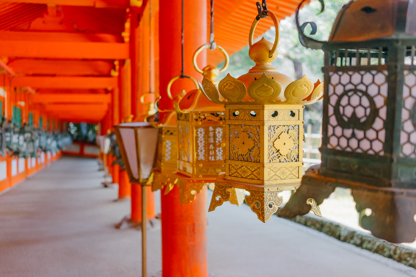 春日大社以灯笼出名,这里的灯笼主要主要是青铜色和金色。