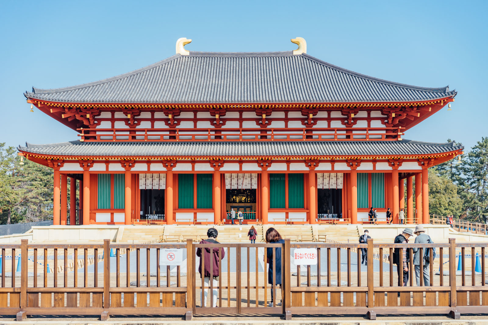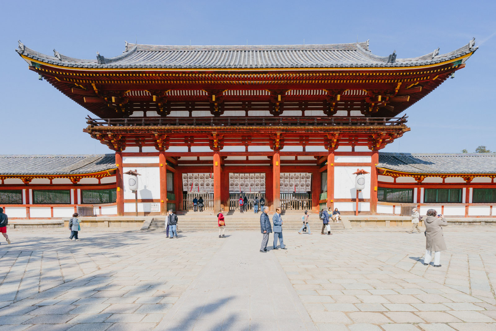 透过中门的栏杆往里看就可以看到东大寺的真容。这可能是我迄今为止在日本见过最雄伟的寺庙了,为了尽快给媳妇找个地方休息,纵有有一些不甘我们还是选择了过门不入。