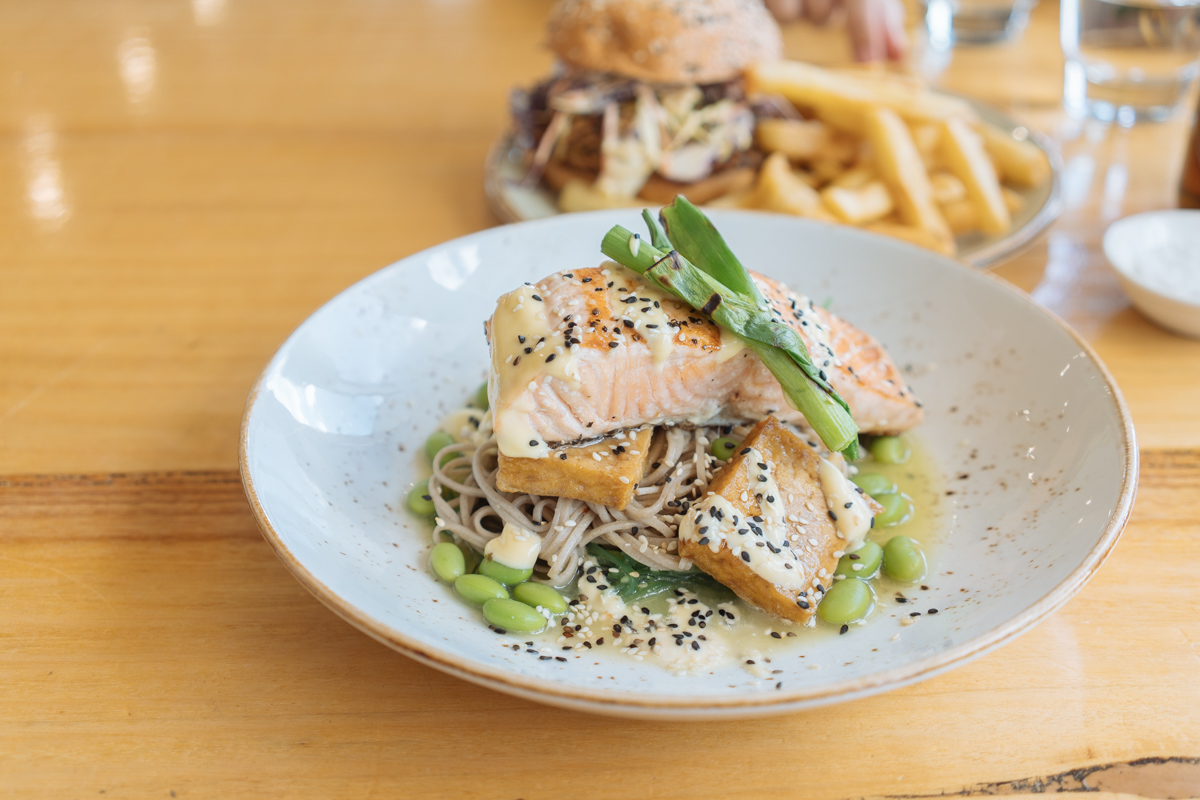 媳妇点的三文鱼配Soba面,据她说吃起来非常清爽,也很不错。
