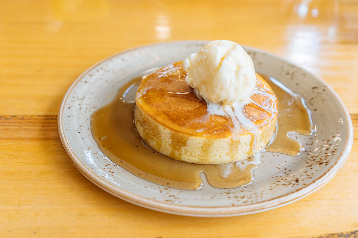 最后是孩子们最爱的pancake,maple syrup配上冰淇凌,像不好吃都不容易……