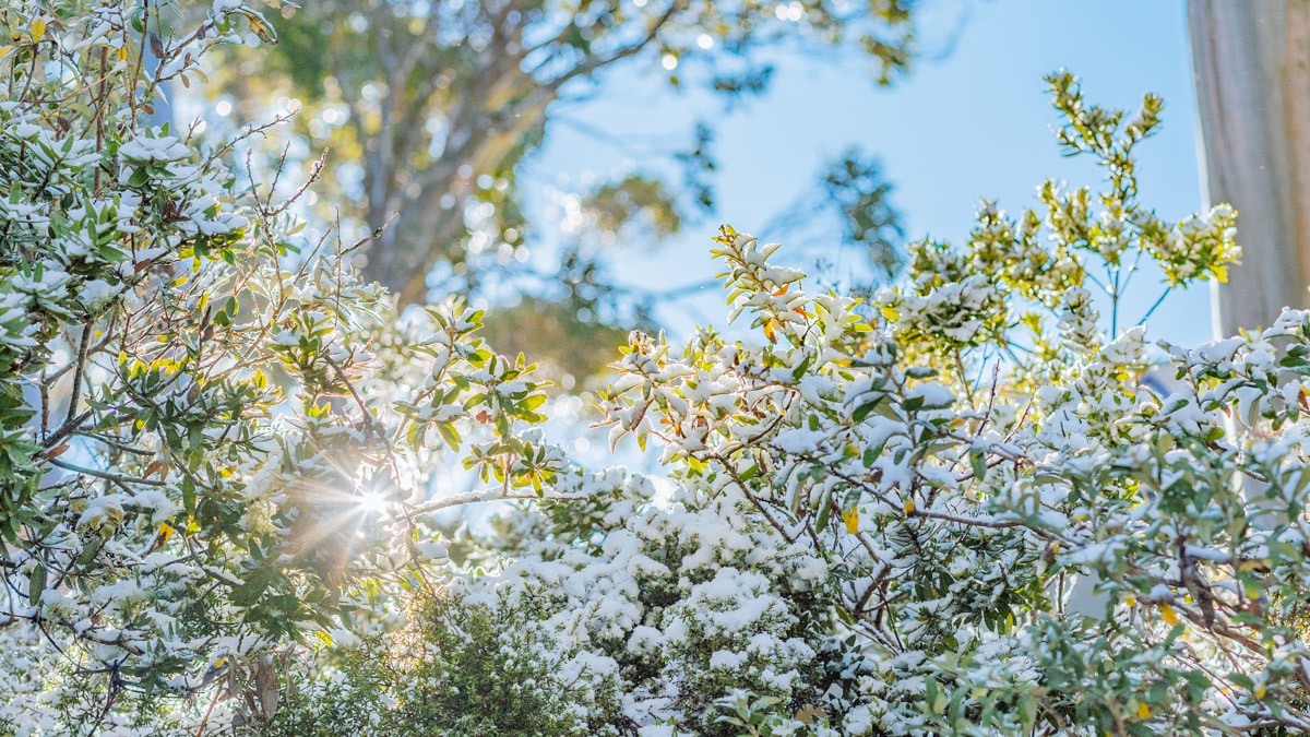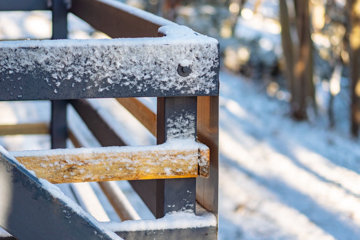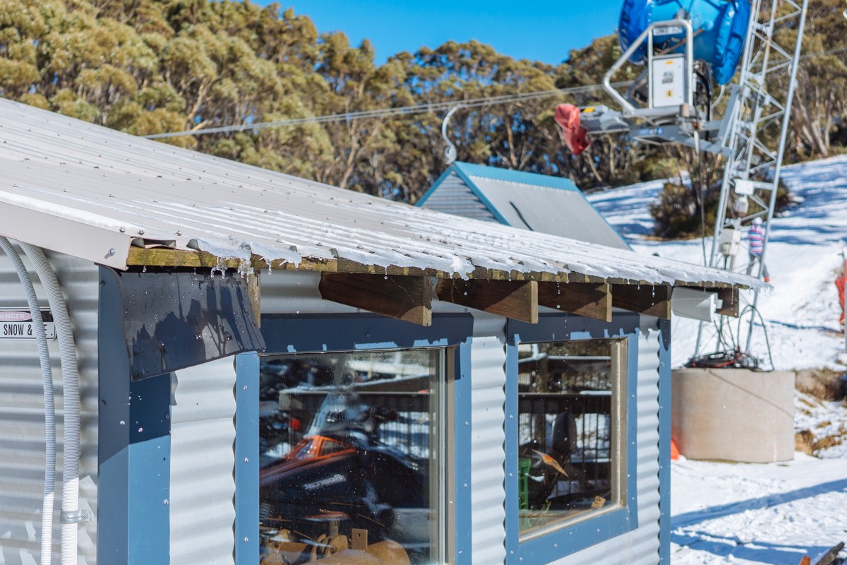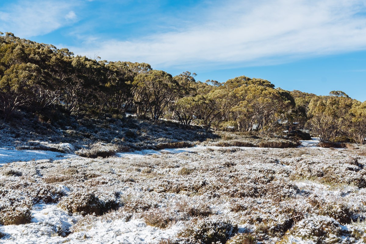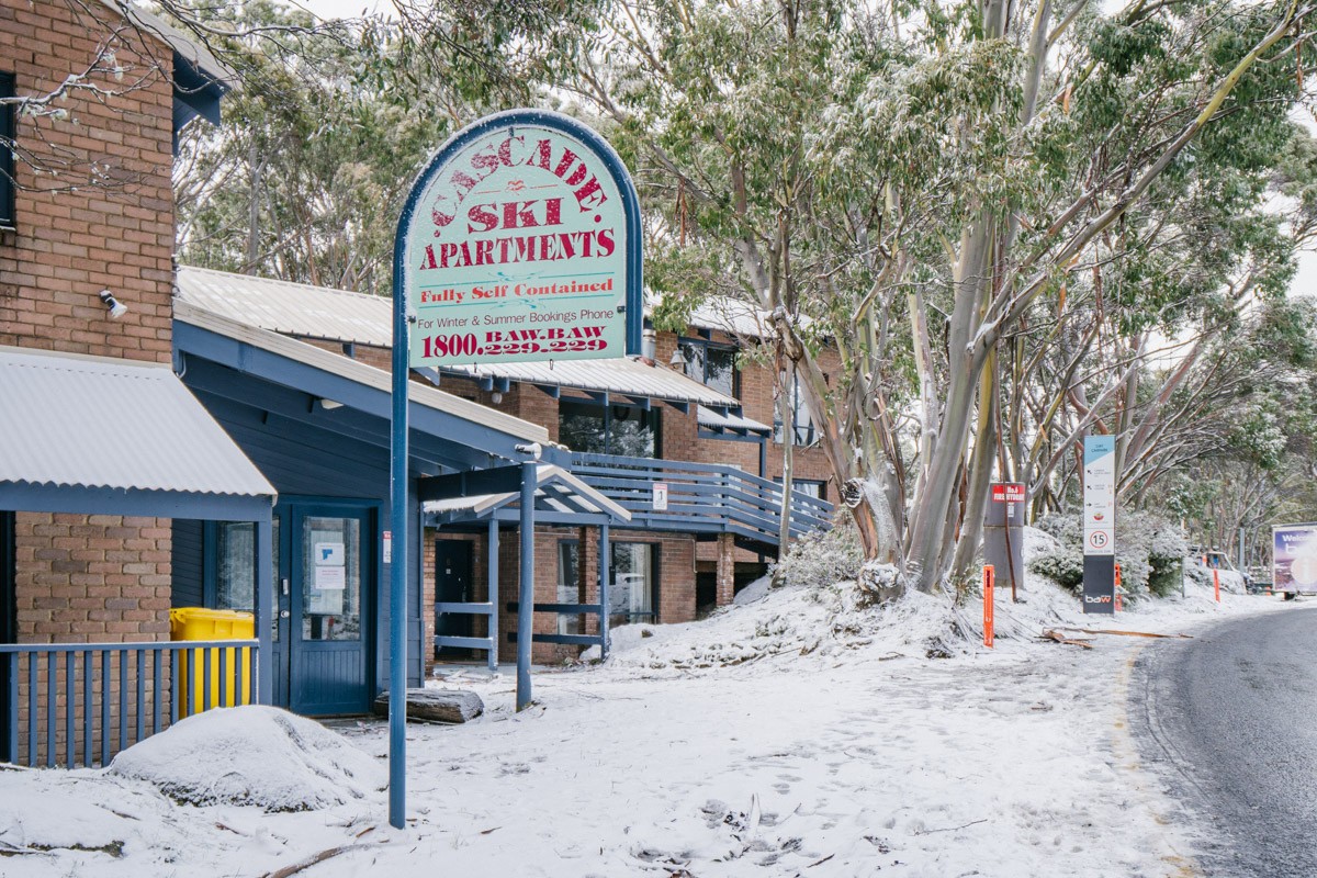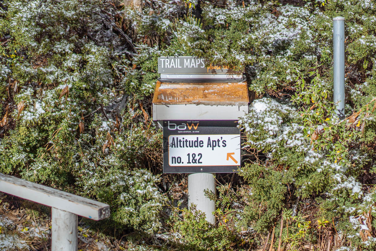 一夜无言,第二天早上起来睡眼惺忪地走出阳台看看天气,被刺骨的寒风一下子吹醒。Mt Baw Baw的雪确实不大,薄薄地一层依附在走廊和窗台。