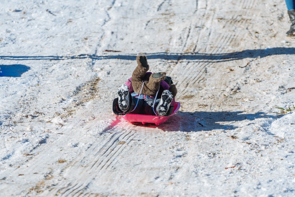 我们今天只打算玩滑雪板,所以不用租雪橇了,明天再来。