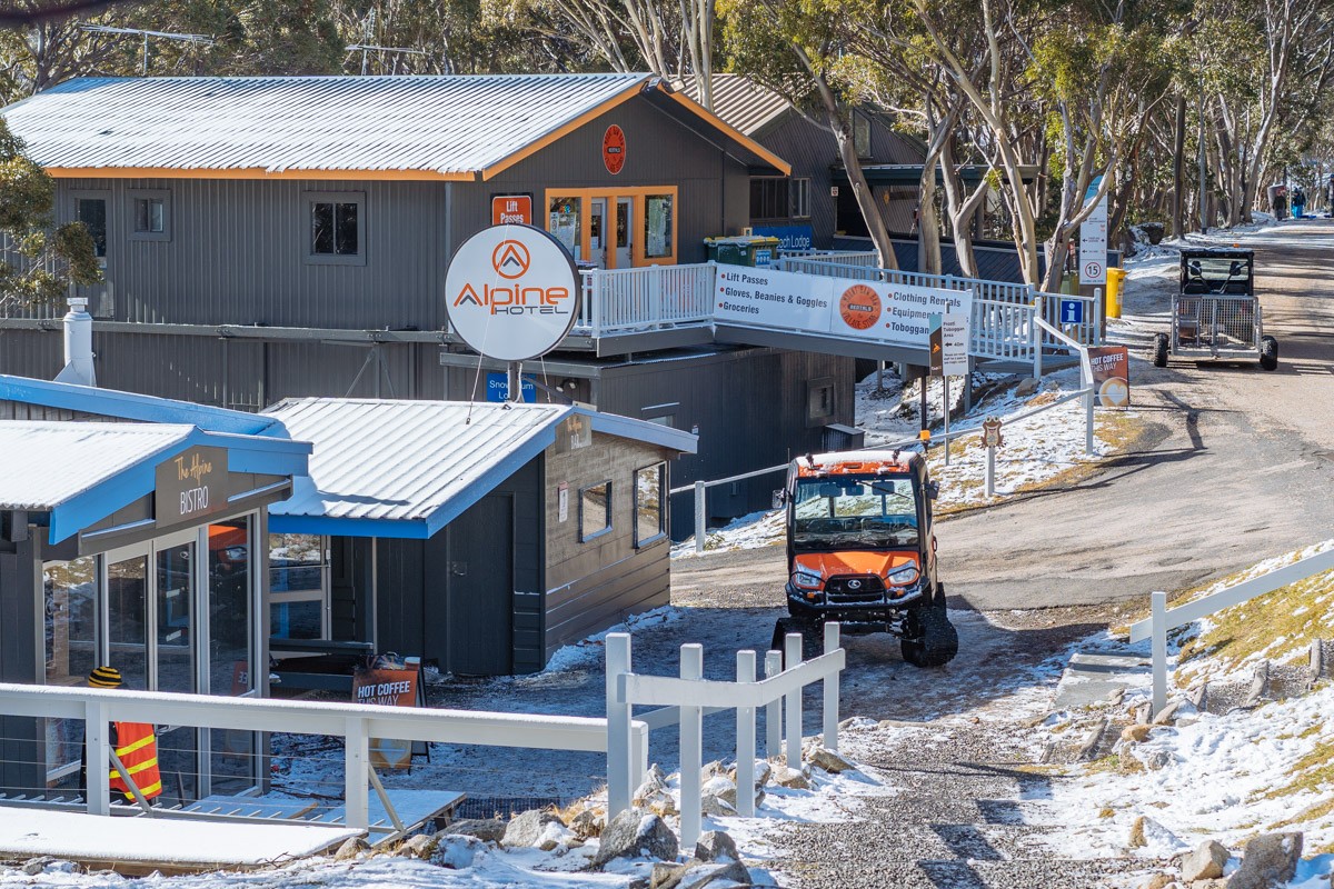 如果你在Mt Baw Baw网上订了租雪橇的票,是在Alpine Hotel旁边的Mt Baw Baw Rentals and Village Store使用。来的正是午饭时间,我们先去Alpine Hotel吃点东西。