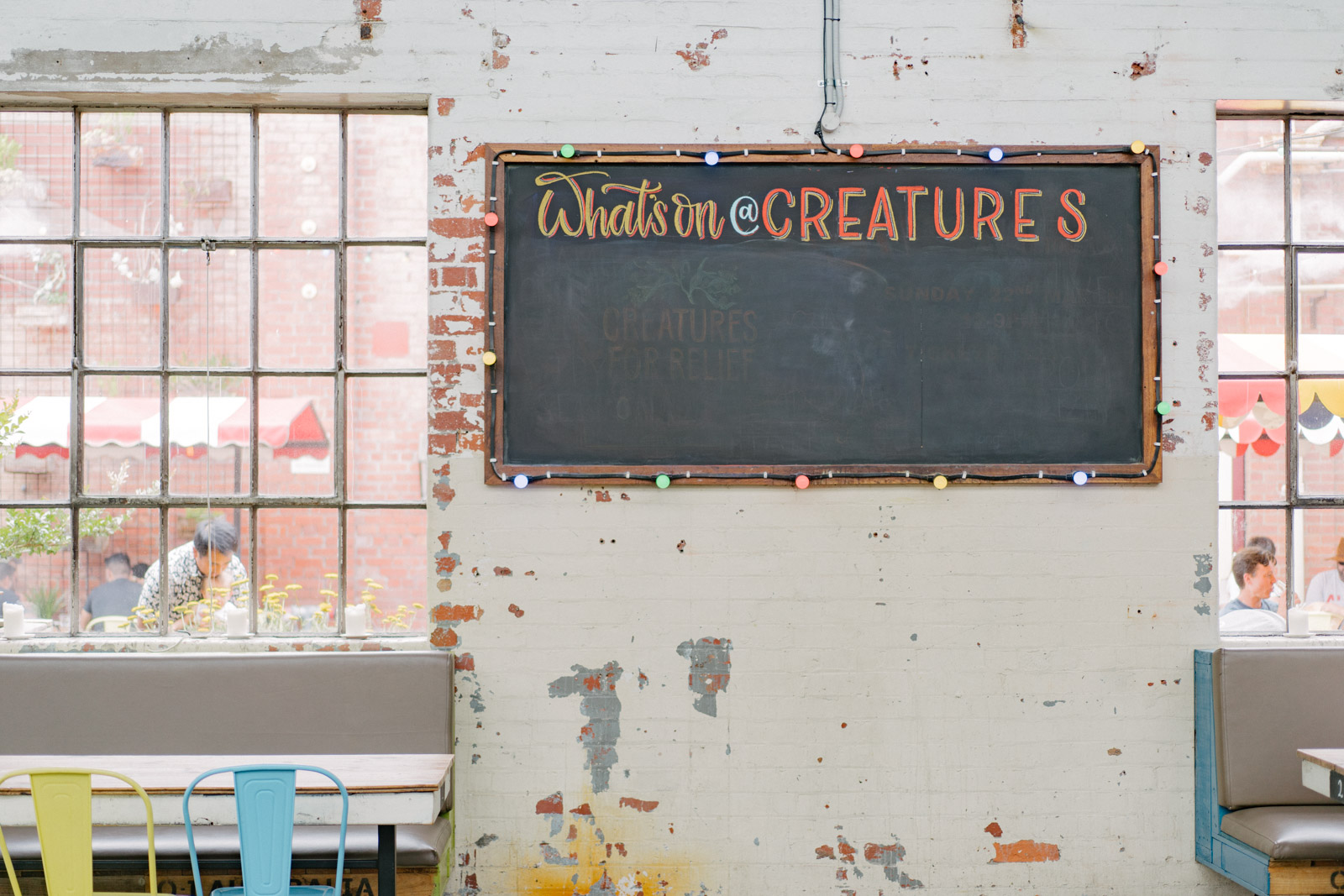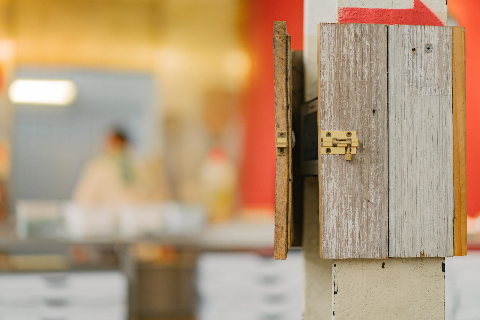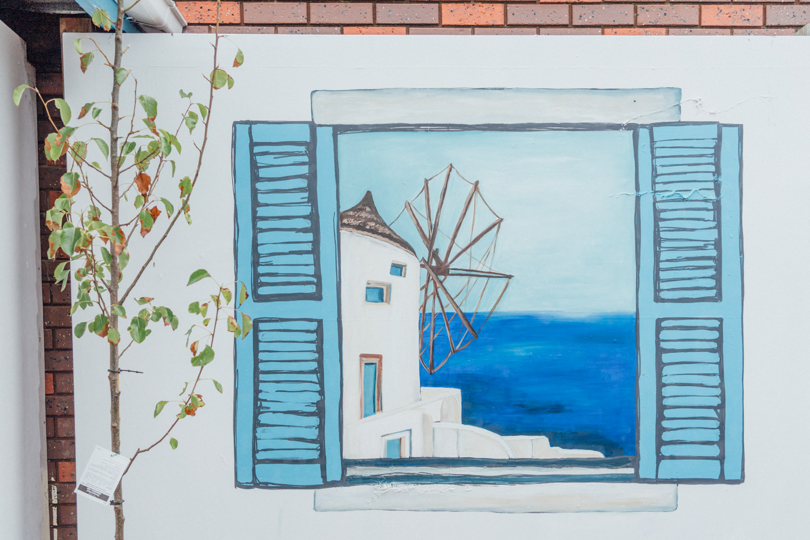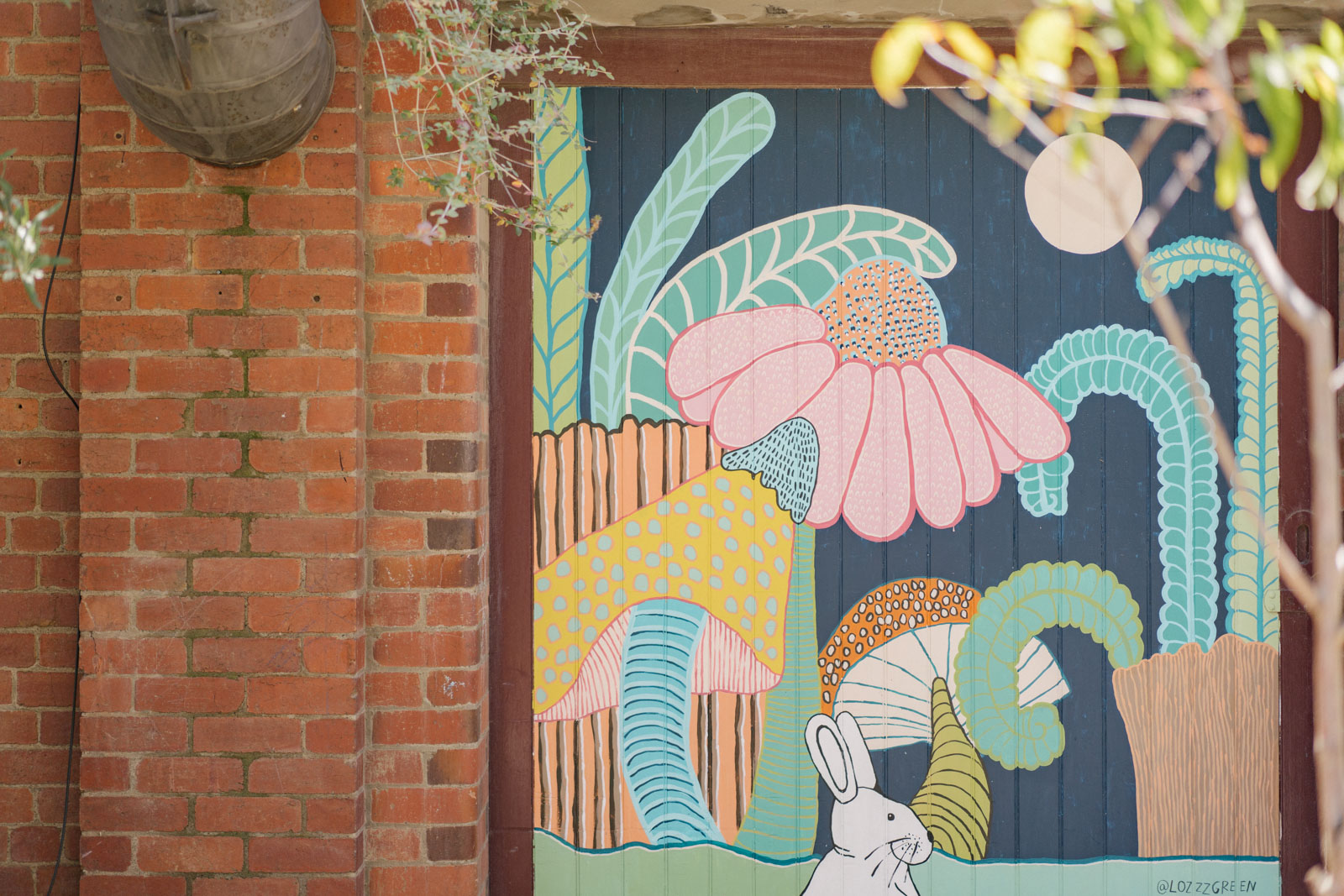毫无意外的,在进入就餐区前顾客需要先做登记。登记好之后我们继续往里走,这条小巷是他们户外的就餐区,三三两两已经差不多坐满。巷子两边的墙壁上要么画着壁画,要么挂着这种植物或者是跟酒厂相关的小装饰。