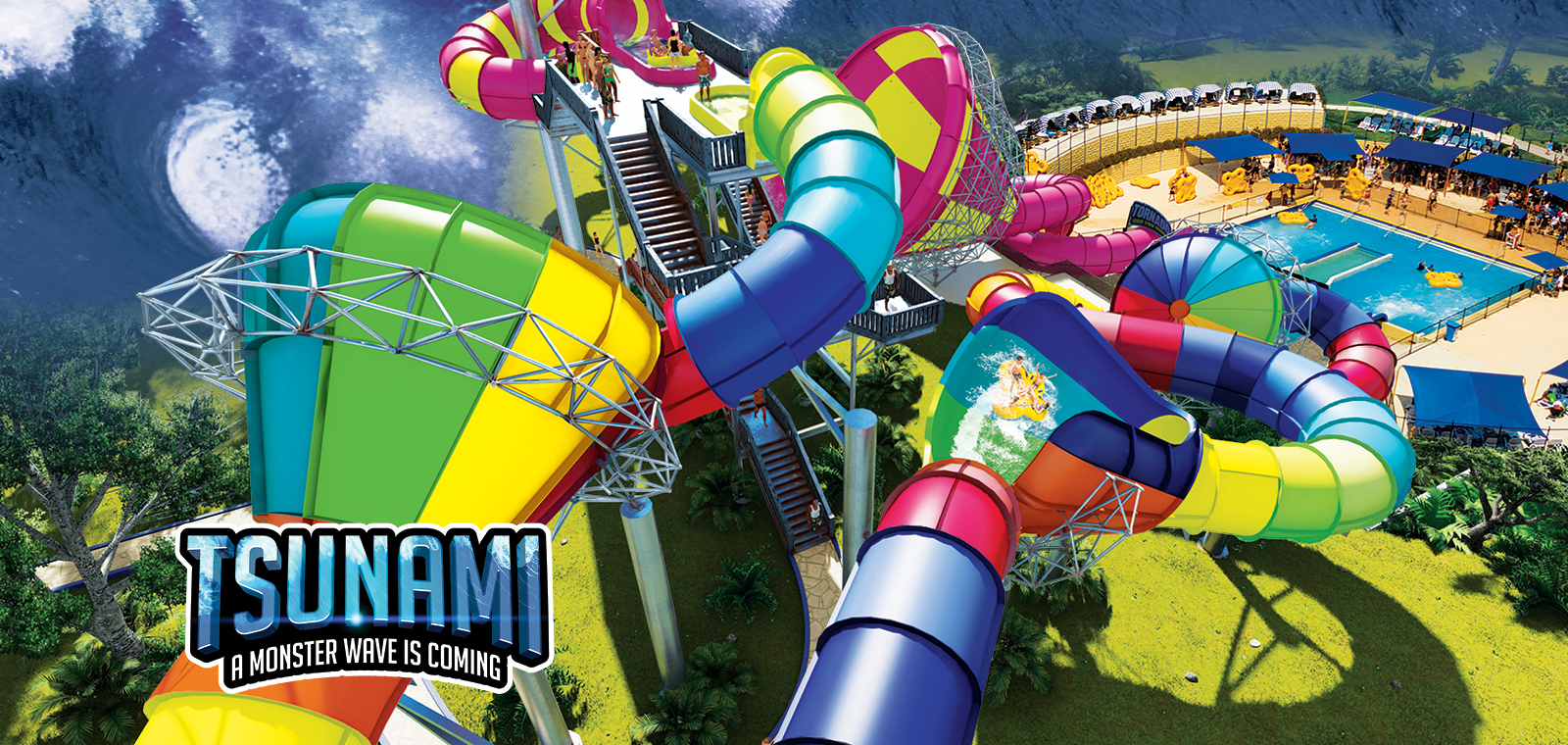 然后就带着孩子去玩水,相比几年前,这里多了Tornado和Tsunami这两个项目。这两个还挺好玩的,我跟儿子玩了好几次。