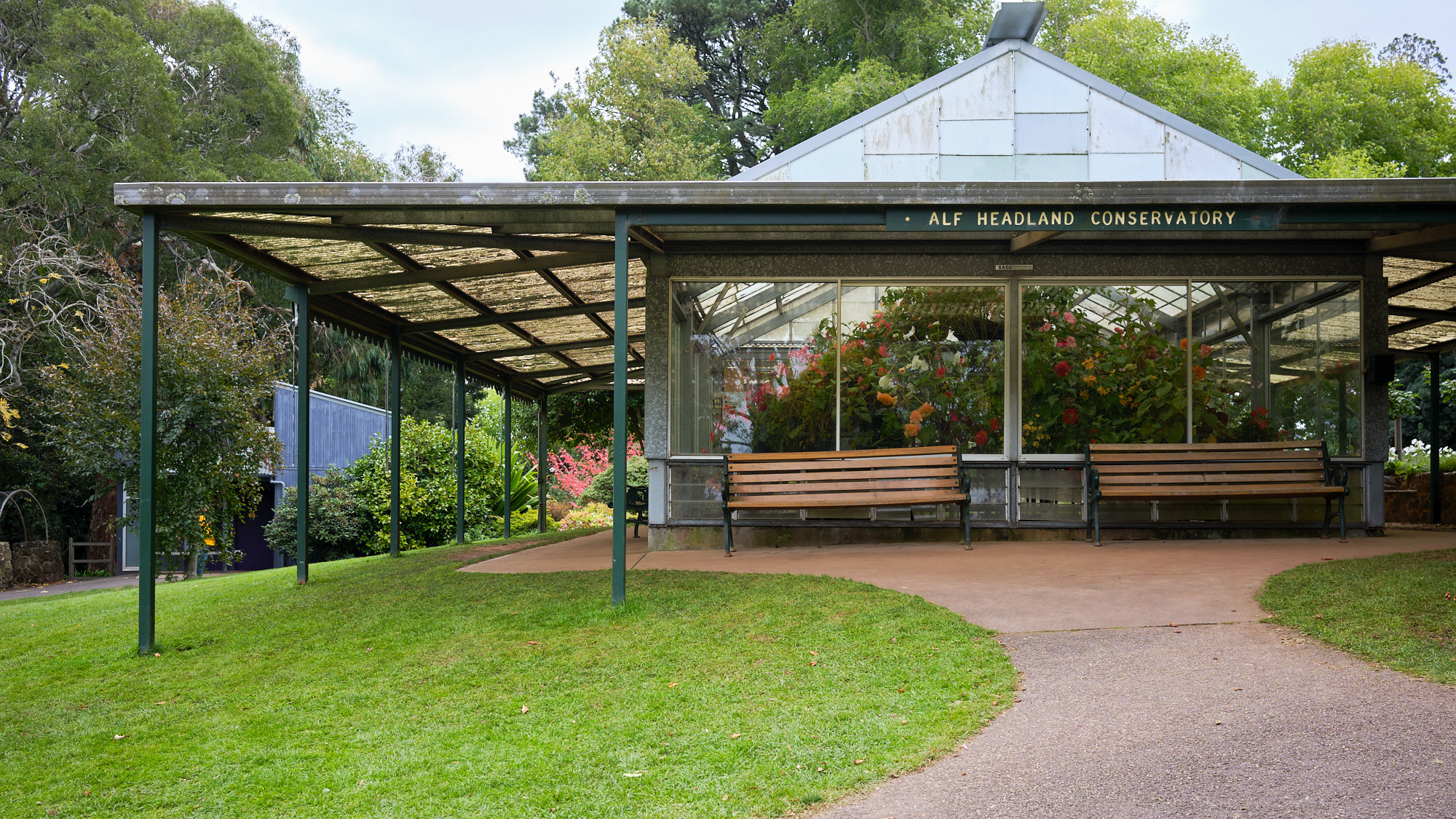 走到小路的尽头就是温室,温室旁就是我们此行的目标Wombat Hill House。