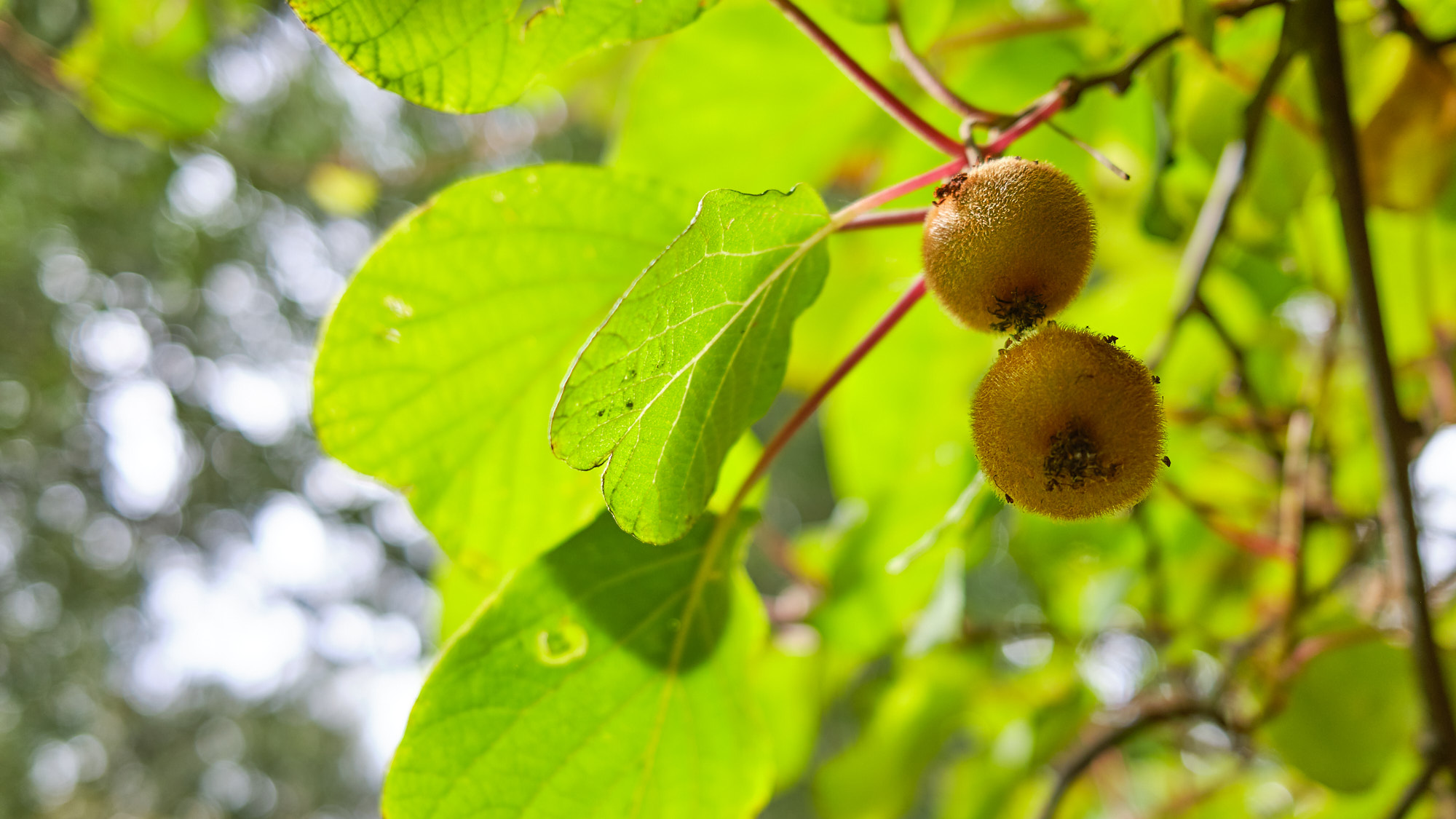 我们在后面的小院子坐下,院子里爬满了各种植物,在我们头顶就挂着小小的奇异果。店员跟我们说如果我们有兴趣可以自己摘几个带回去,路边的野花不要采,野果当然也不要吃。