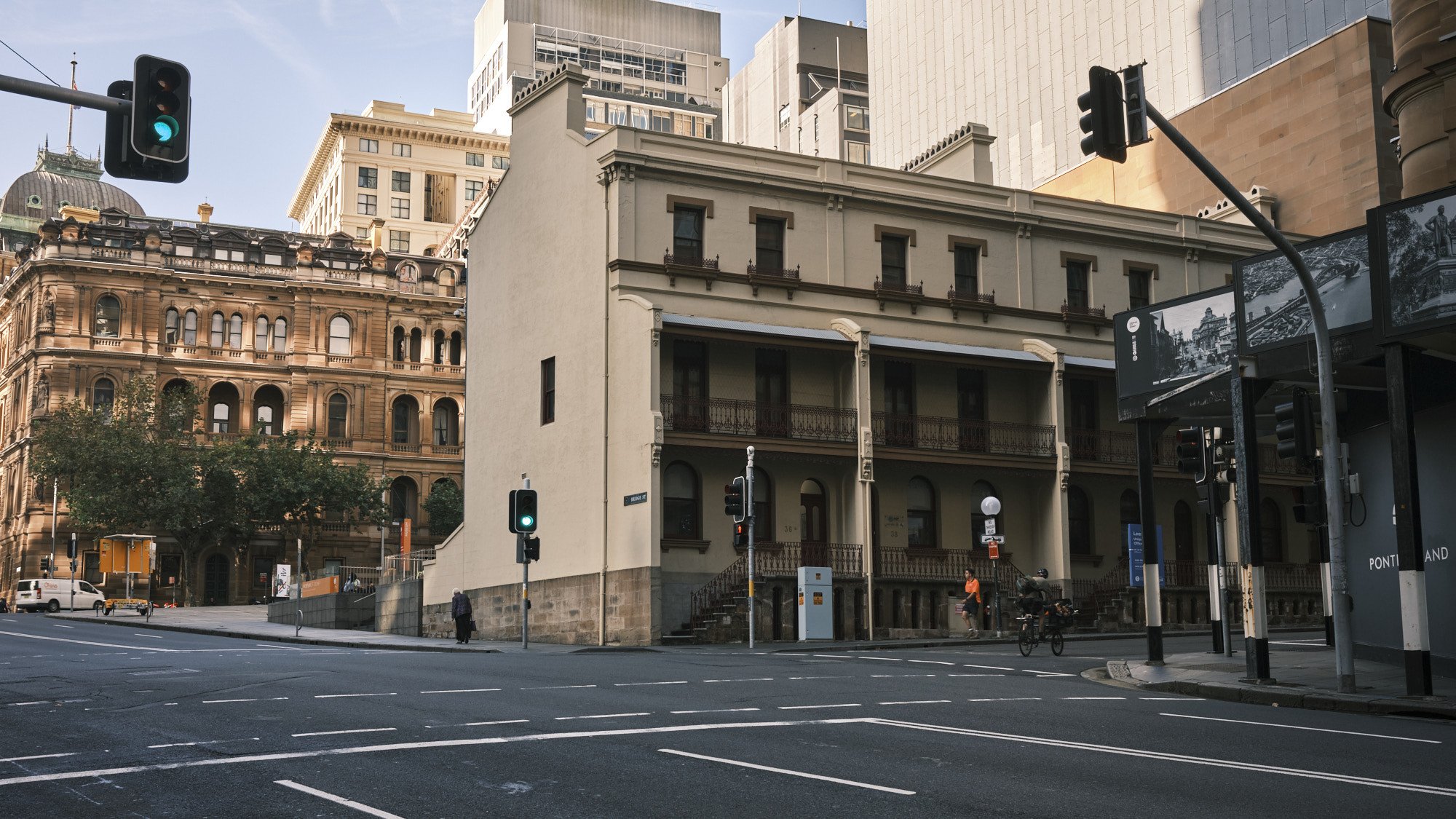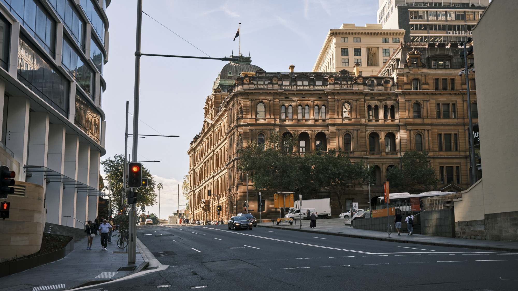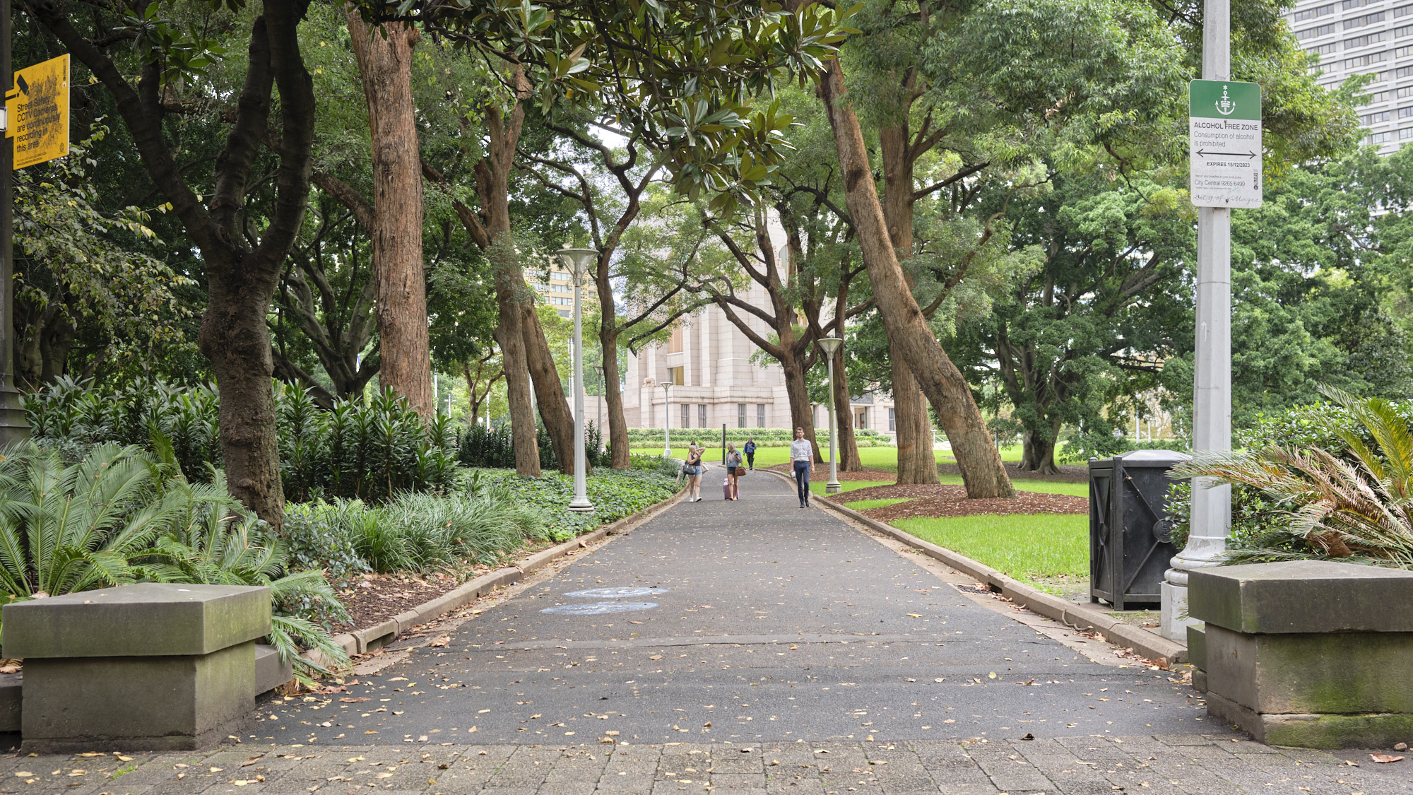 穿过酒店旁的小巷以及Macquarie Place Park,我很快来到了Bridge St。我将沿着这条路前往Royal Botanic Garden。