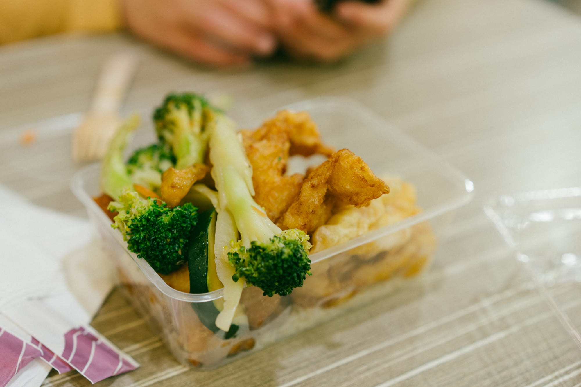 我也是第一次感受到凯恩斯物价的离谱,大部分的的摊位卖的碟头饭都是$20上下,有些还明白着告诉我要等至少半个小时才有吃的……为了尽快拿到食物我们选择吃寿寺和盒饭,这个所谓large size的盒饭(左图)竟然买$18.9我也是醉了……😮💨
