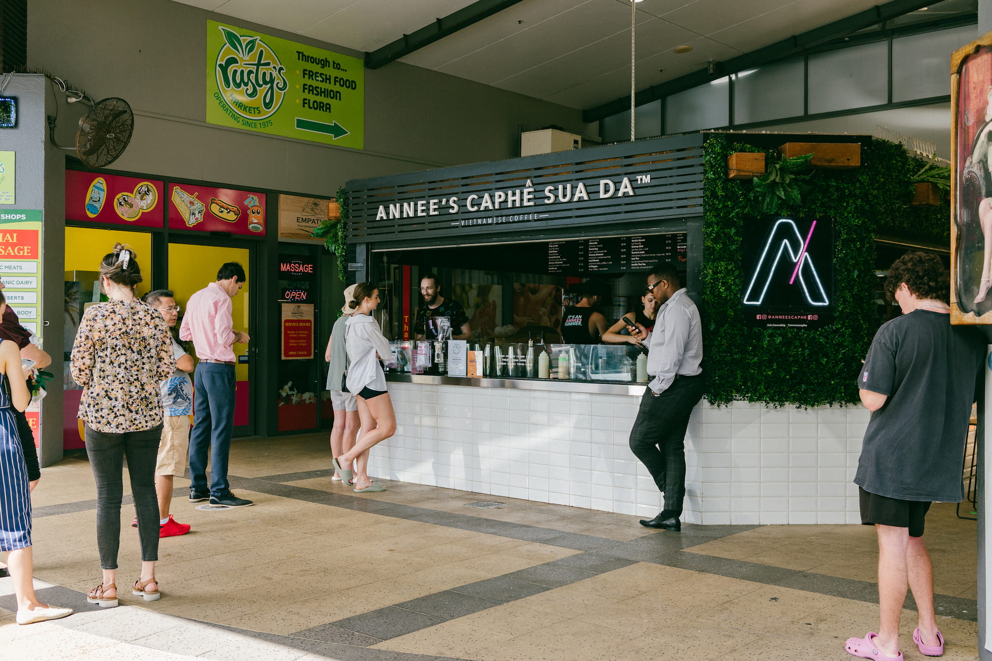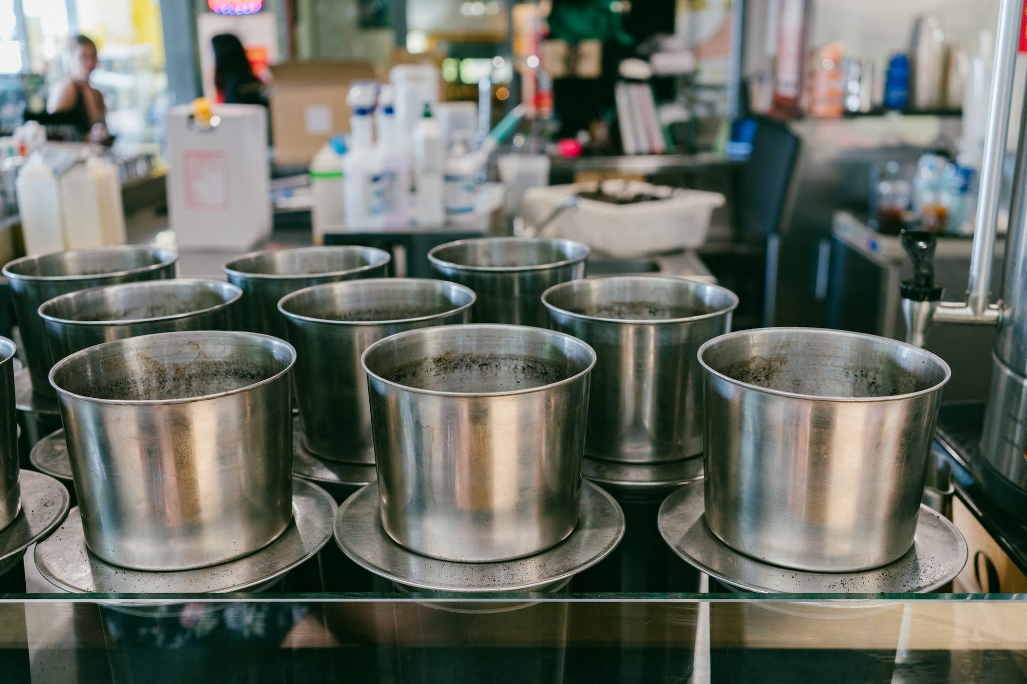 我们的习惯就是不在酒店吃早饭,于是在前台寄存了行李之后我们出去着吃的。附近评价最好的咖啡店叫Annee’s Caphê Sua Da,第一次看这个名字我还以为是法语,去到那里才知道这里卖的竟然是越南咖啡。我在墨尔本也有喝越南咖啡的喜好,每次去吃Phở的时候都会点一杯Iced White coffee。这家店的菜单允许客户选择椰奶,豆奶或者椰子水做底,也在咖啡里面也可以选择加入冰淇淋,hazelnut或者almond的萃取液,在我看来把越南咖啡的做法升级到了另外一个级别,加上比传统更时髦的包装,这也许就是为什么它一杯可以卖$7.5的原因。当然越南人也许觉得这种升级是对于传统的背离也说不定。