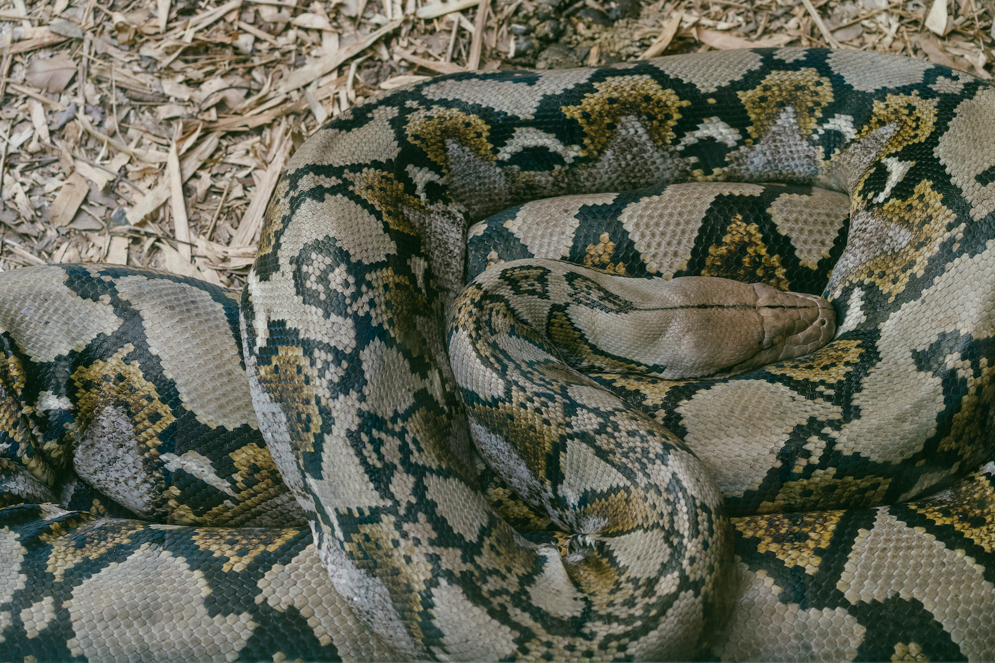 过做人员给我们介绍了两种蛇🐍,一种英文叫Boa,中文名字叫蚺。这种蛇看起来跟蟒蛇很像,我唯一记住它的特点就是它是卵胎生,也就是说蚺的卵会在母蛇的身体里先孵化成小蛇再生出来。第二种蛇就是澳洲知名的太攀蛇,剧毒!
