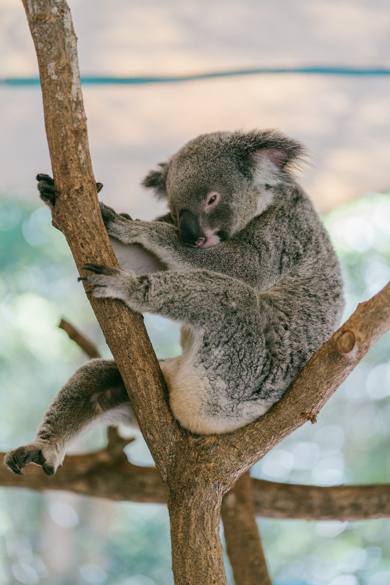 这个公园不大但是可看的地方也有不少。我们沿着地图往前走,首先就路过了考拉的栖息地。说起来这里考拉和游客的距离特别近,在维多利亚这边的几个公园游客的手是绝对碰不到考拉的。往前走我们先过来看蛇的表演