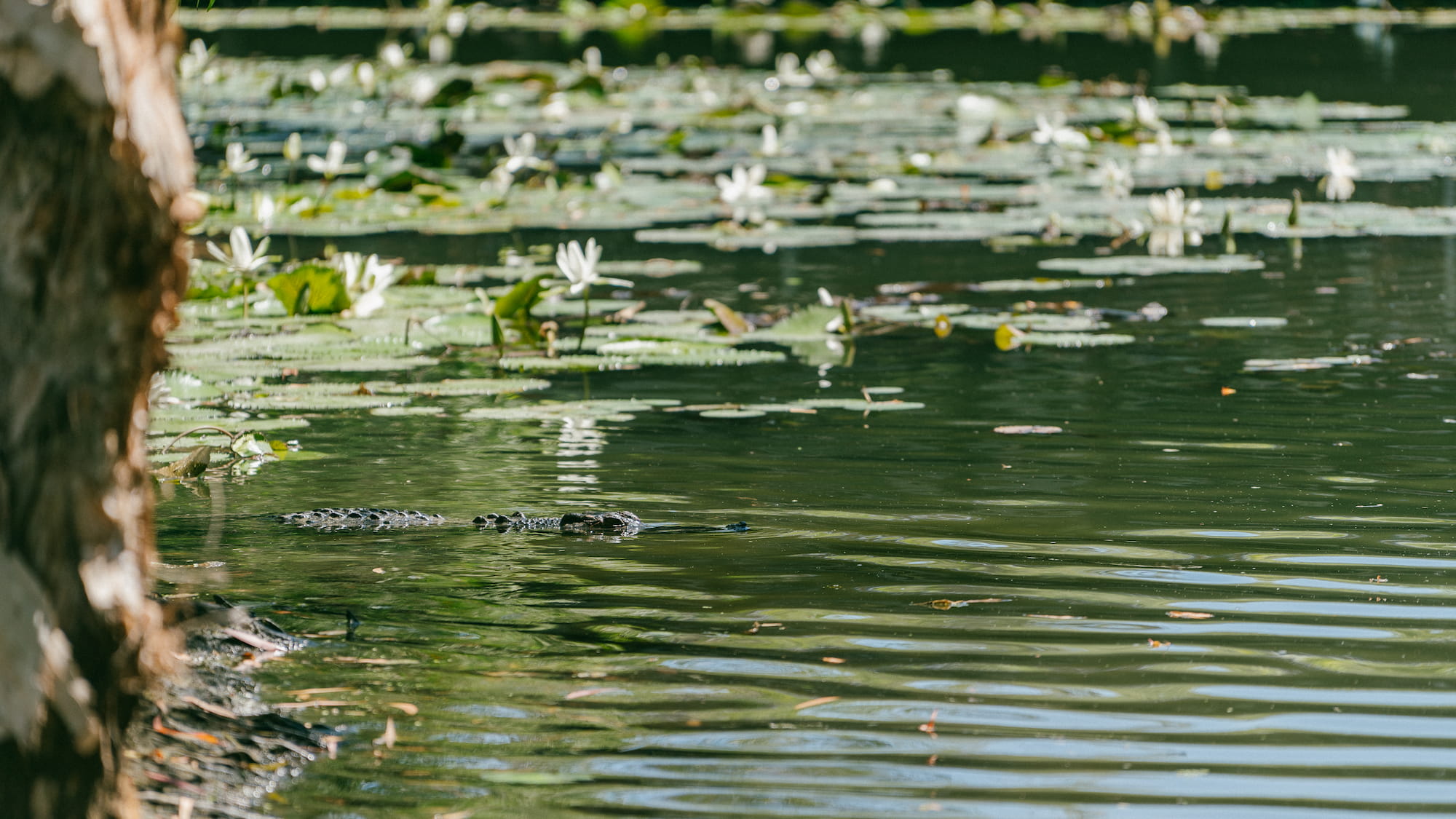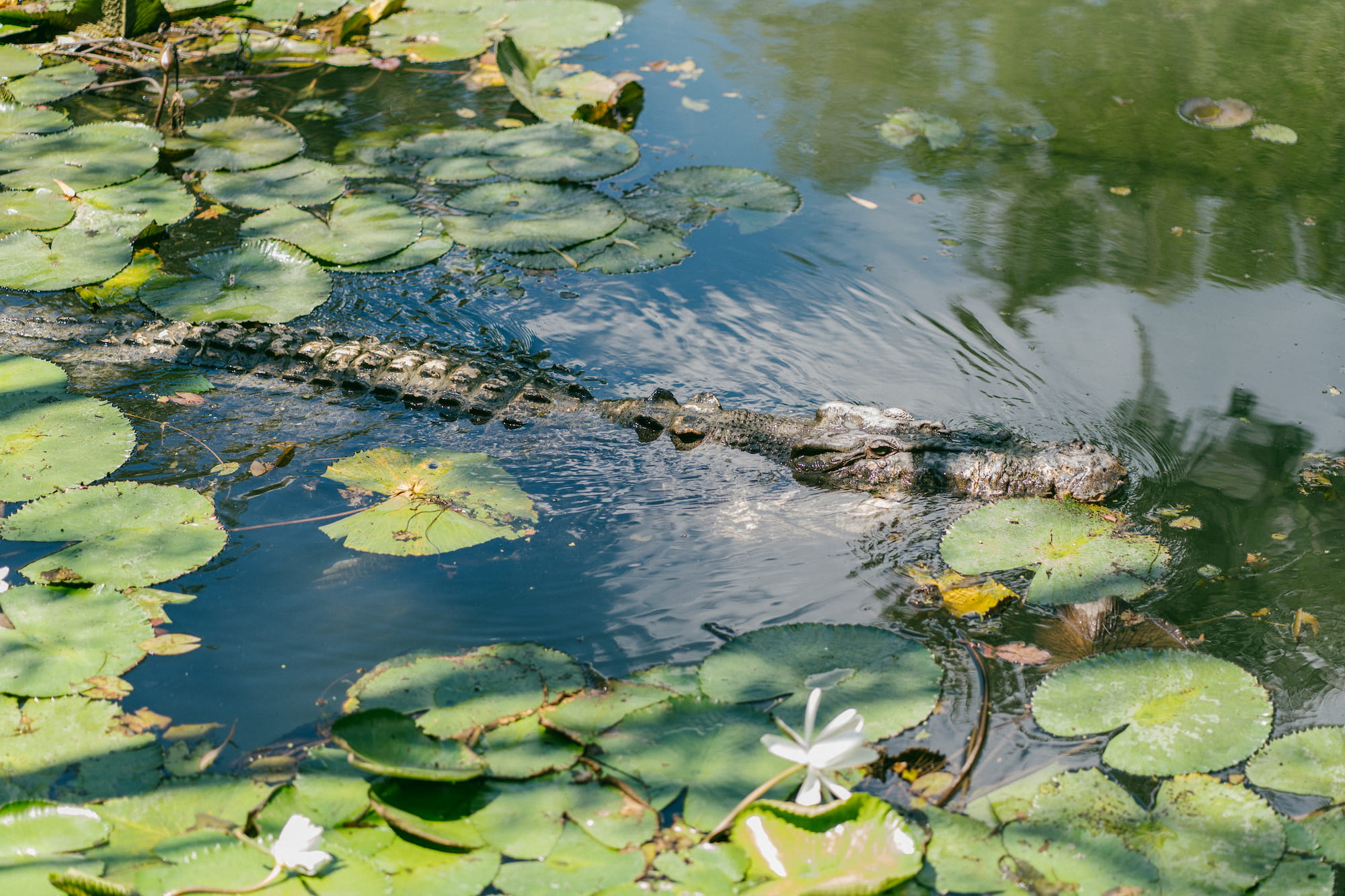 从Gallery of living art走出来我们赶往下一个活动,坐船环绕一下这里的小池塘。开船的大爷对于池塘里的鳄鱼的习性特别的熟悉,带着我们各种找鳄鱼。