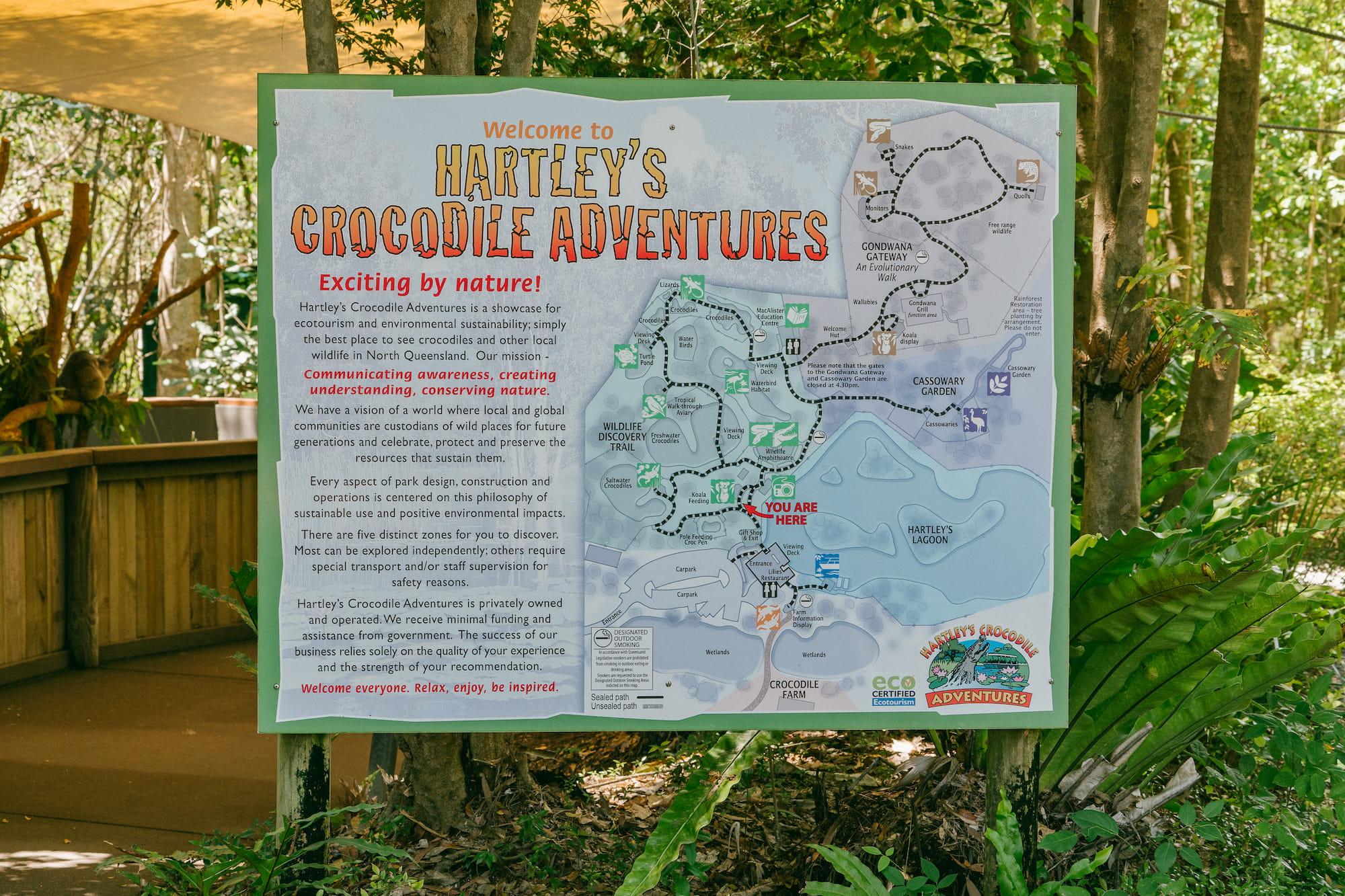 我媳妇选择住Palm Cove的原因就是这里离Hartley’s Crocodile Adventures比较近,有专门的大巴可以接送。接送大巴由本地公司叫Beaches Meet & Greet承办。接送包含动物园的票价,一家4口$183.5。