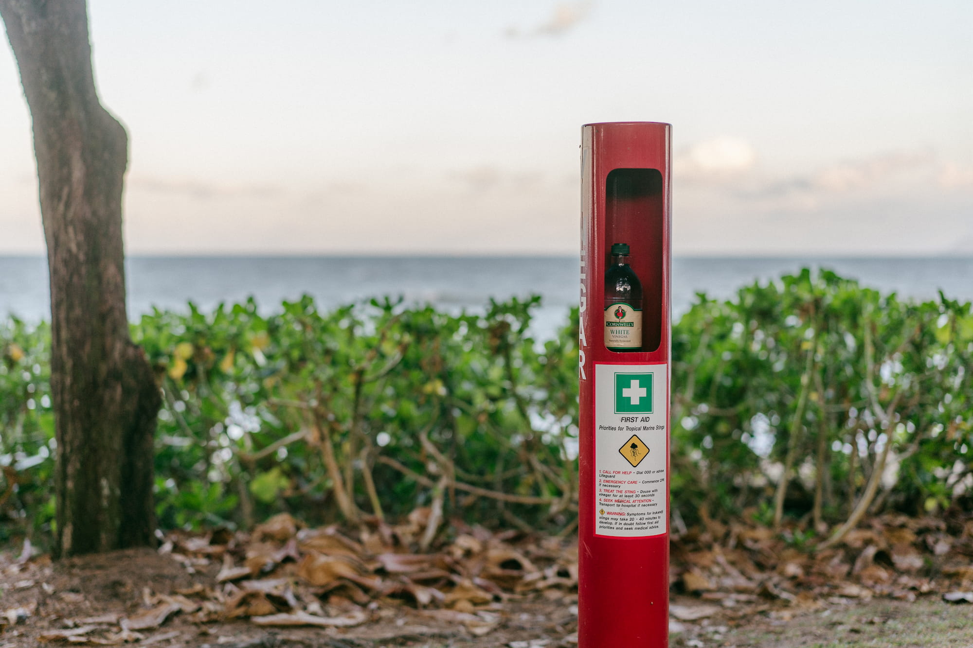 吃过饭,我们在海边走了走,我也是第一次看到醋作为急救物品被放置在海边。