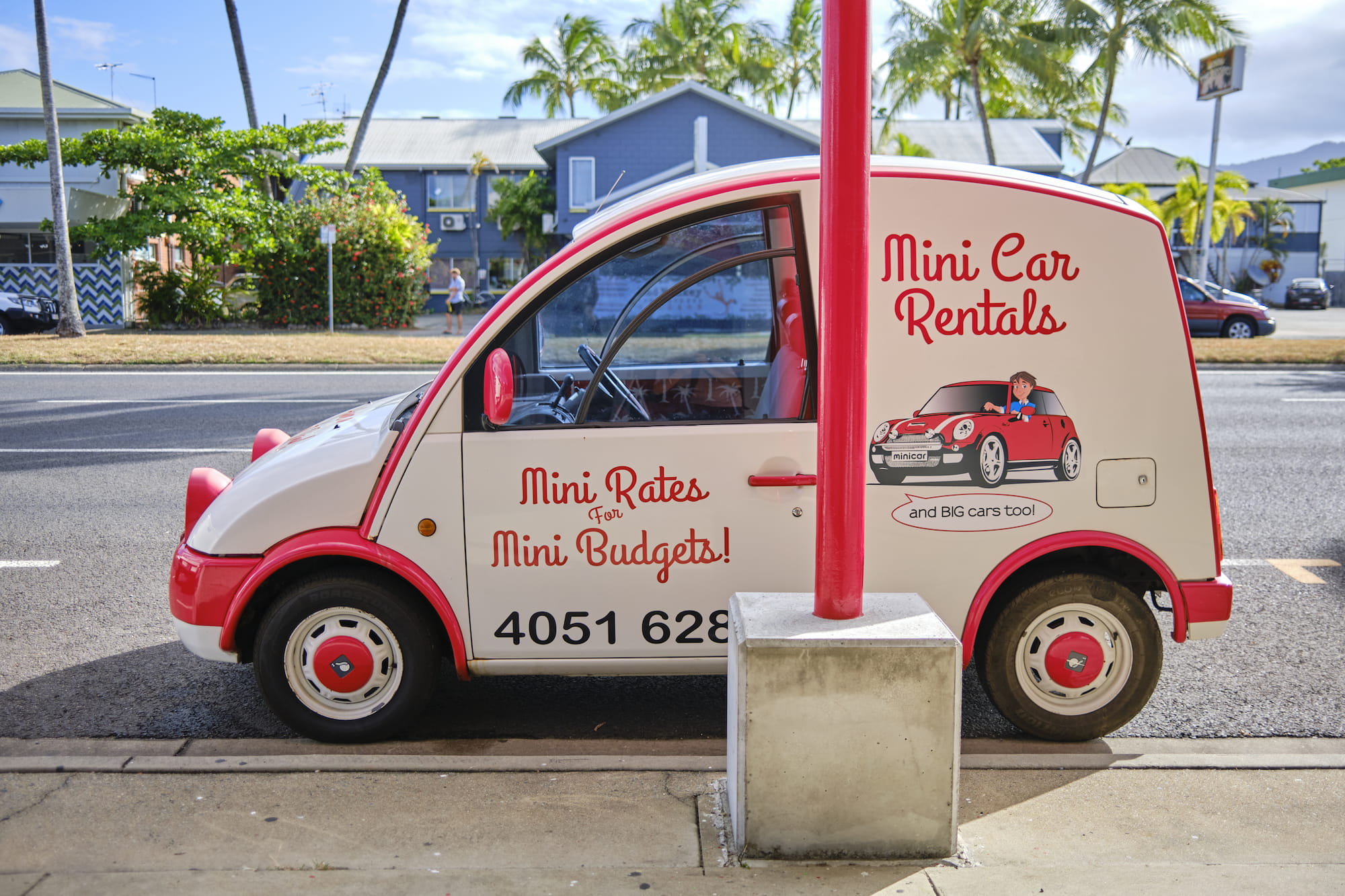 这次行程还剩下最后的两天,我们决定还是要租车自驾才行。也不知道是什么原因,凯恩斯所有的大的租车公司(比如说hertz,avis,thrifty等)的价格都飙升,一个Hyundai i20起步价一天就$160+还不包括各种保险。最为谷歌地图资深用户的我最后就在地图上慢慢找,让我找到了这家叫Mini Car Rental的本地公司。这里的价格甚至让我有点too good to be true的感觉,一辆Mini Countryman怎么能比其他租车公司的Hyundai i20还要便宜呢?抱着尝试一下的心态我拨通了他们的电话咨询,沟通之后觉得这个公司很靠谱于是直接在电话里就把信用卡资料给了他们,等着第二天有人来酒店接我去提车。