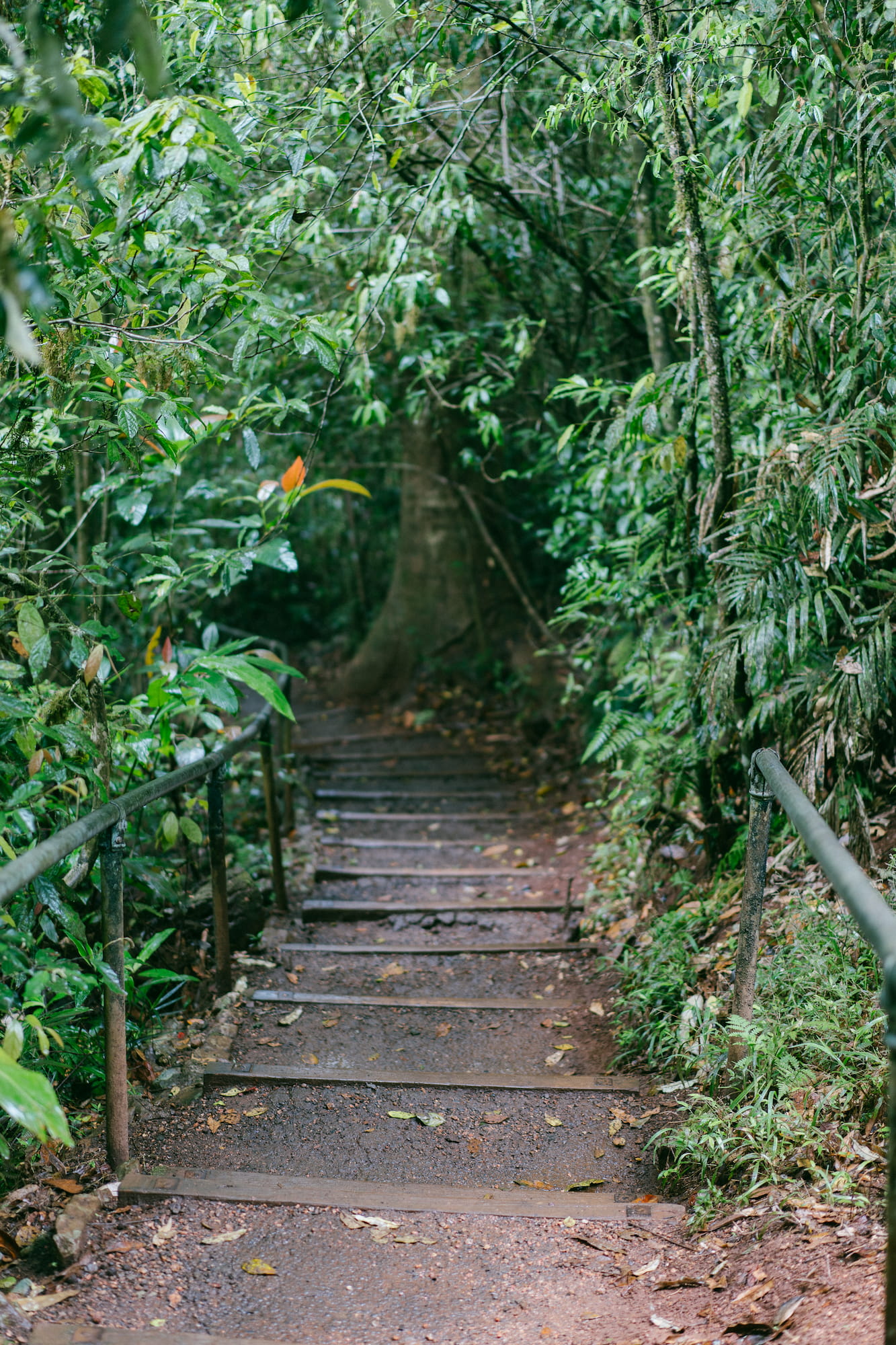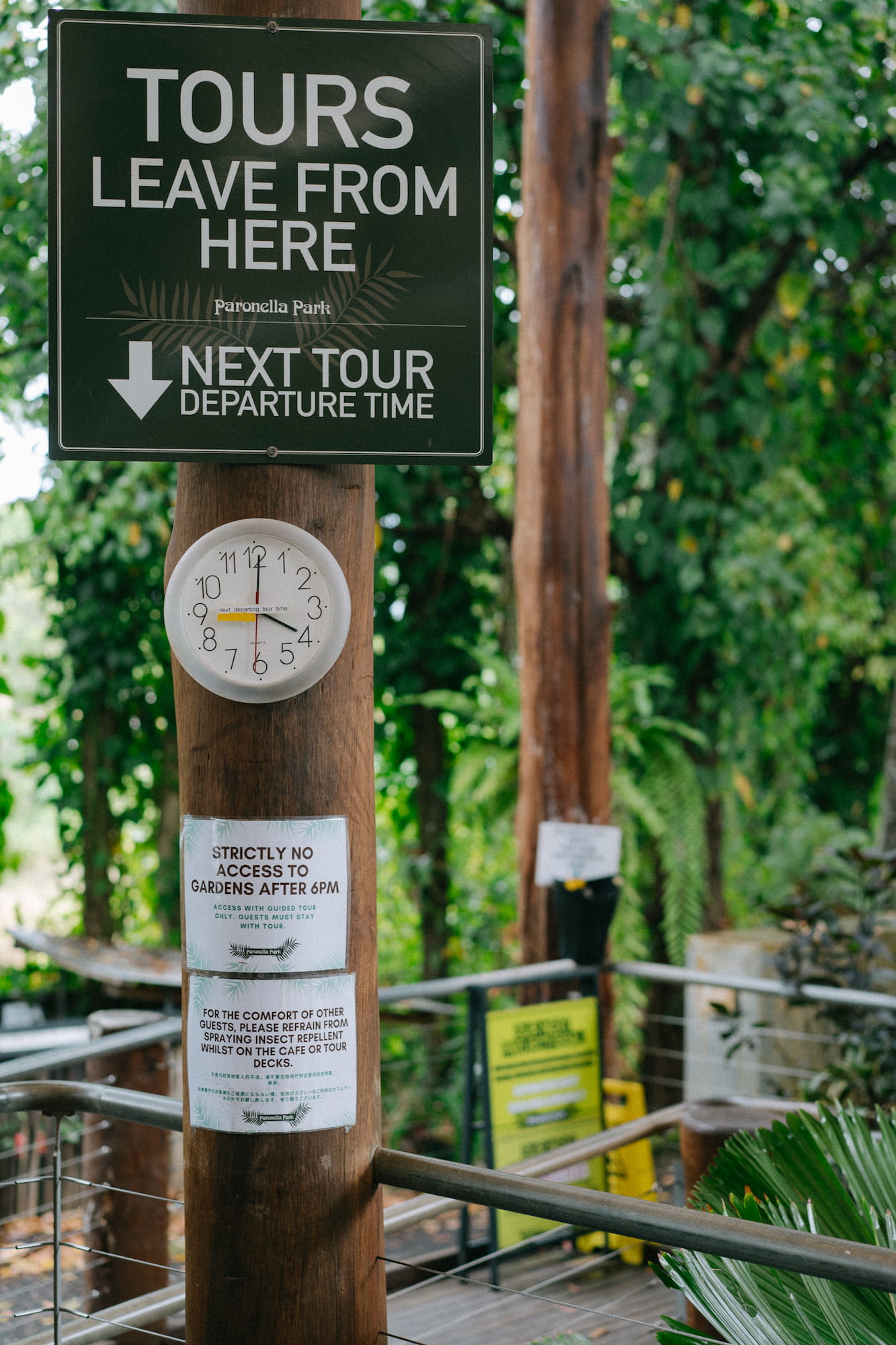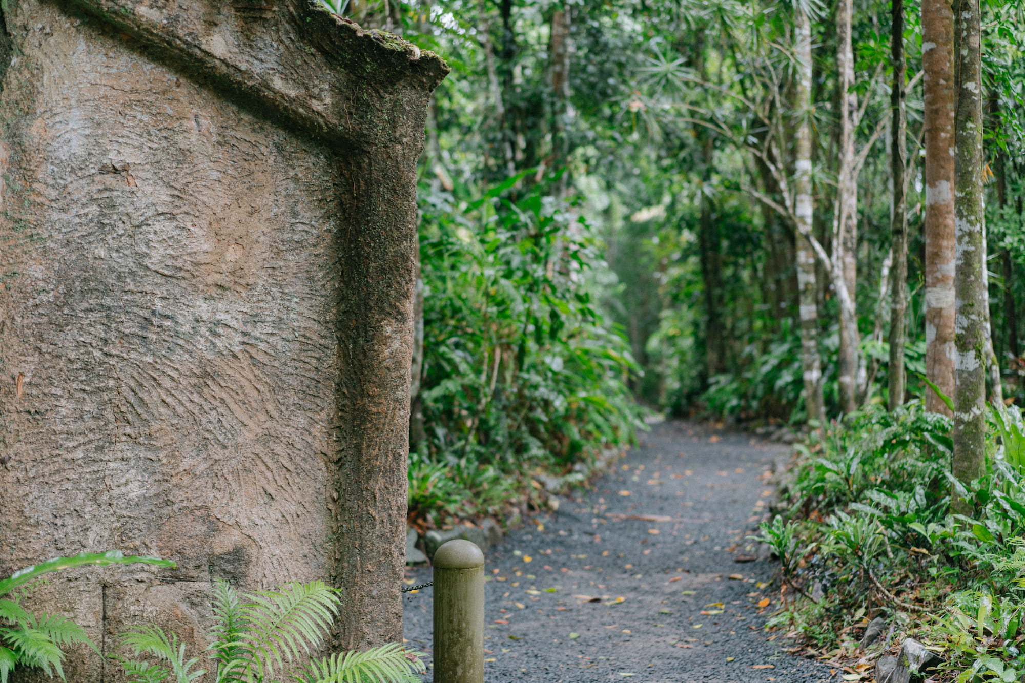 热带雨林地区的气候就一直在下雨和准备下雨之间徘徊,空气中的湿度之大甚至超过了记忆中广东的梅雨季节,我感觉我的呼吸就像是在桑拿房里面一样,呼进去的都是水汽。我们购买的门票包含了导游的费用,实际上这个公园如果没有导游讲故事的话,这里实在没什么可玩的,我们就在门口静静的等待着。