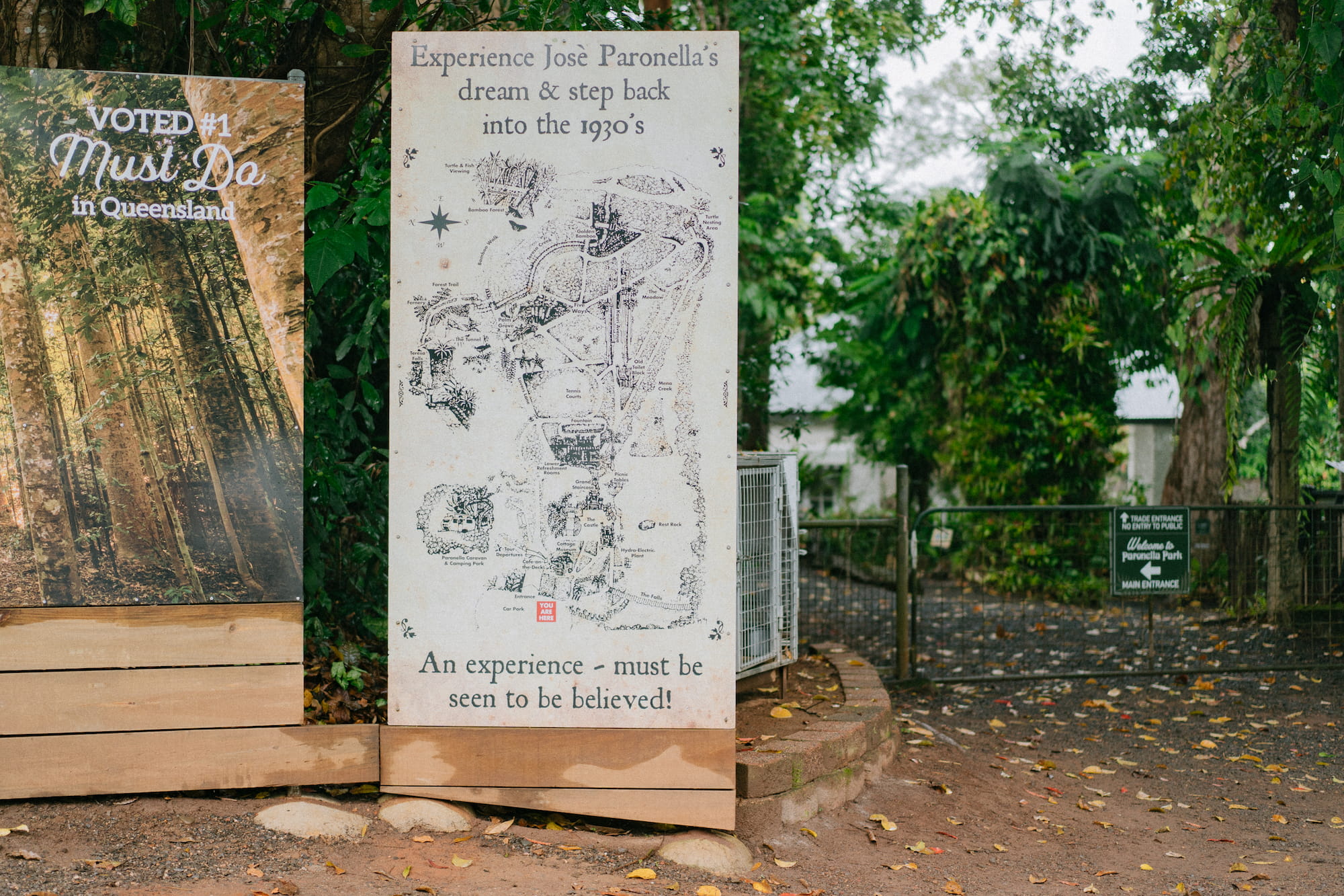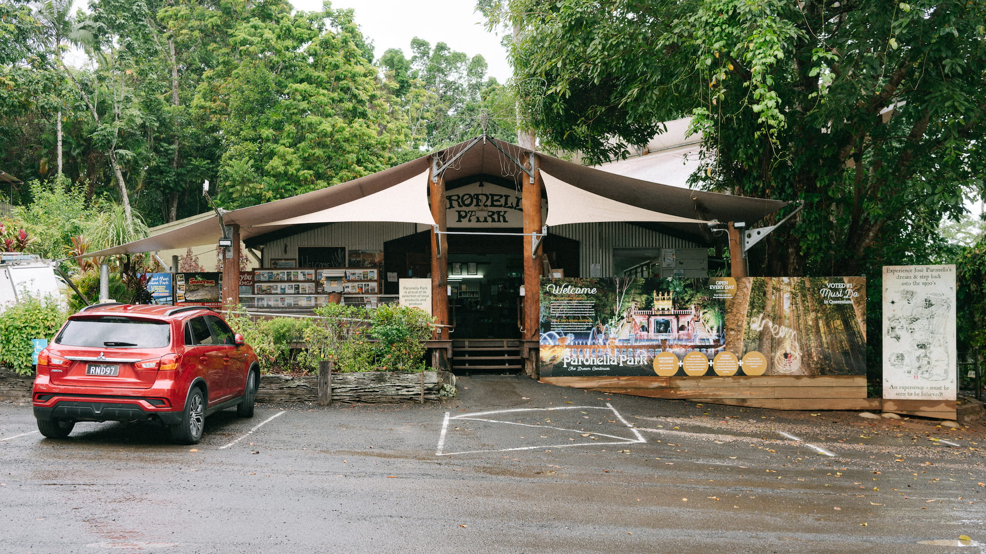 我们中途停靠在了某个小镇吃了顿快餐,接下来就是今天行程的最后的目的地Paronella Park。之前我们在小红书上找本地景点的时候这里可以说是网红打卡地之一。