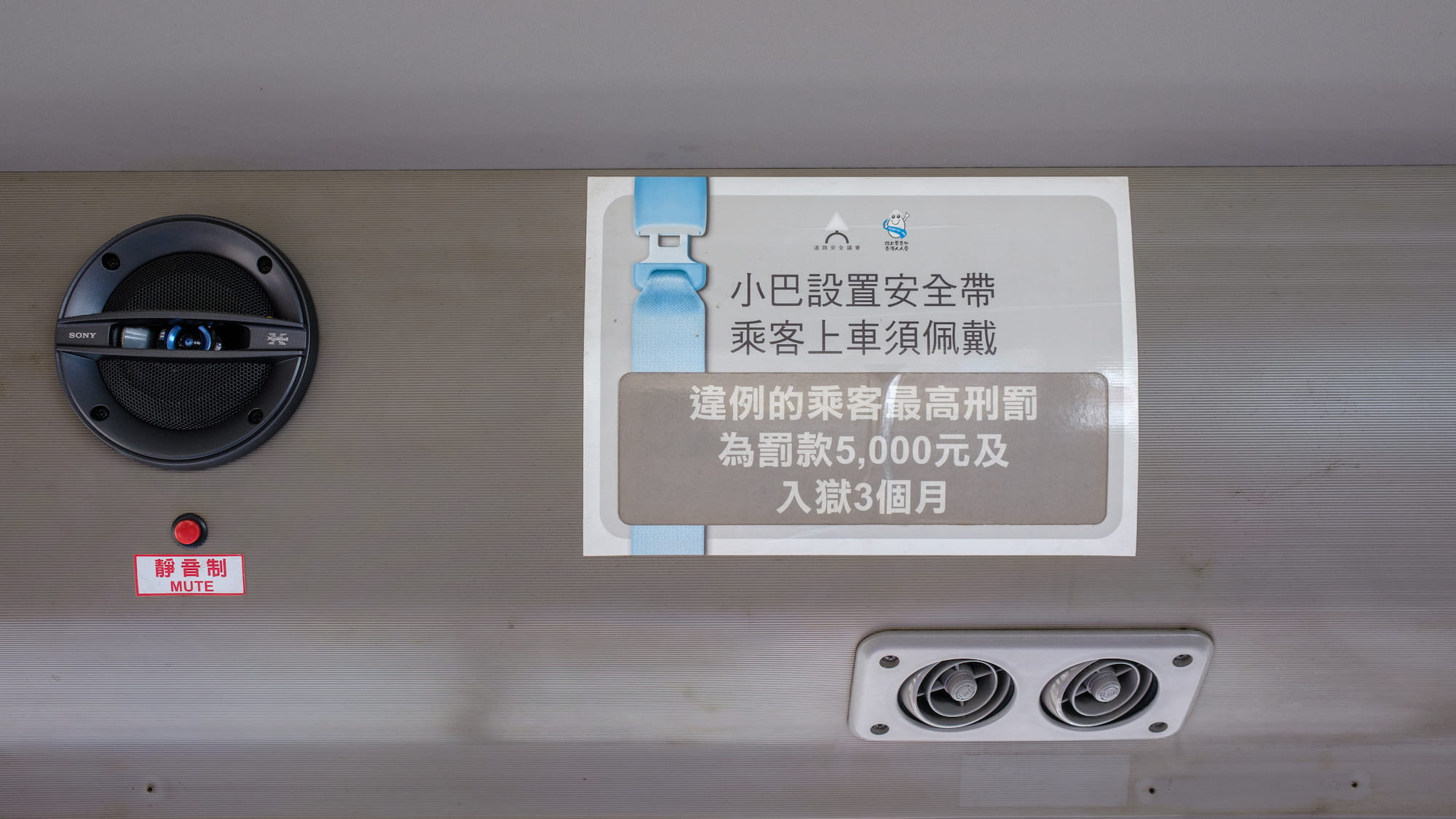 在有比如说警告必须在小巴上佩戴安全带,实际上我就没见过有人佩戴的。