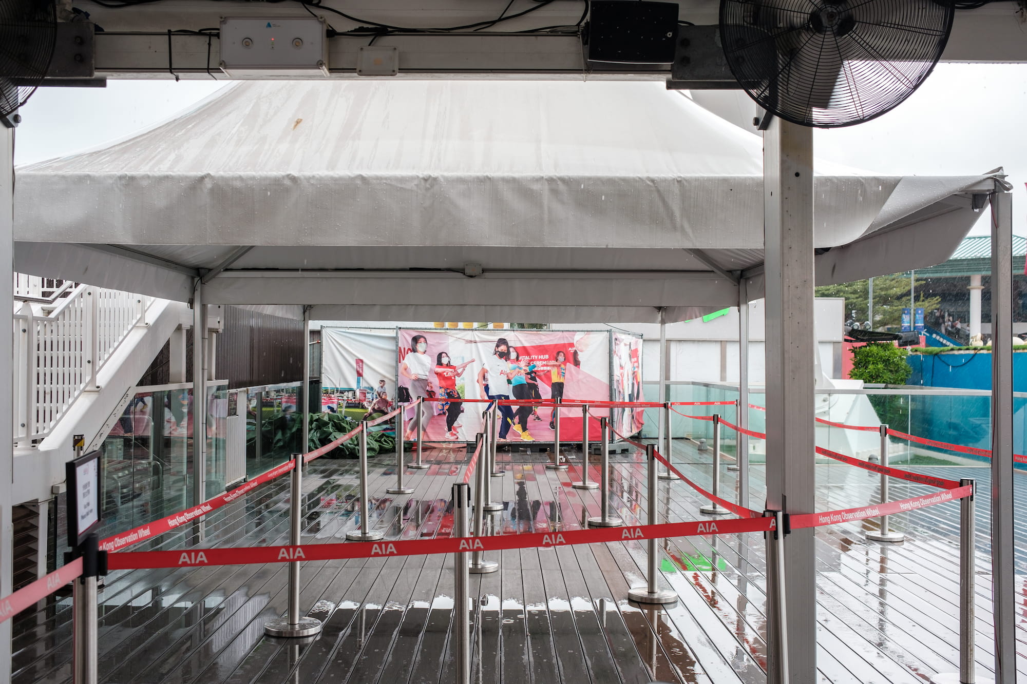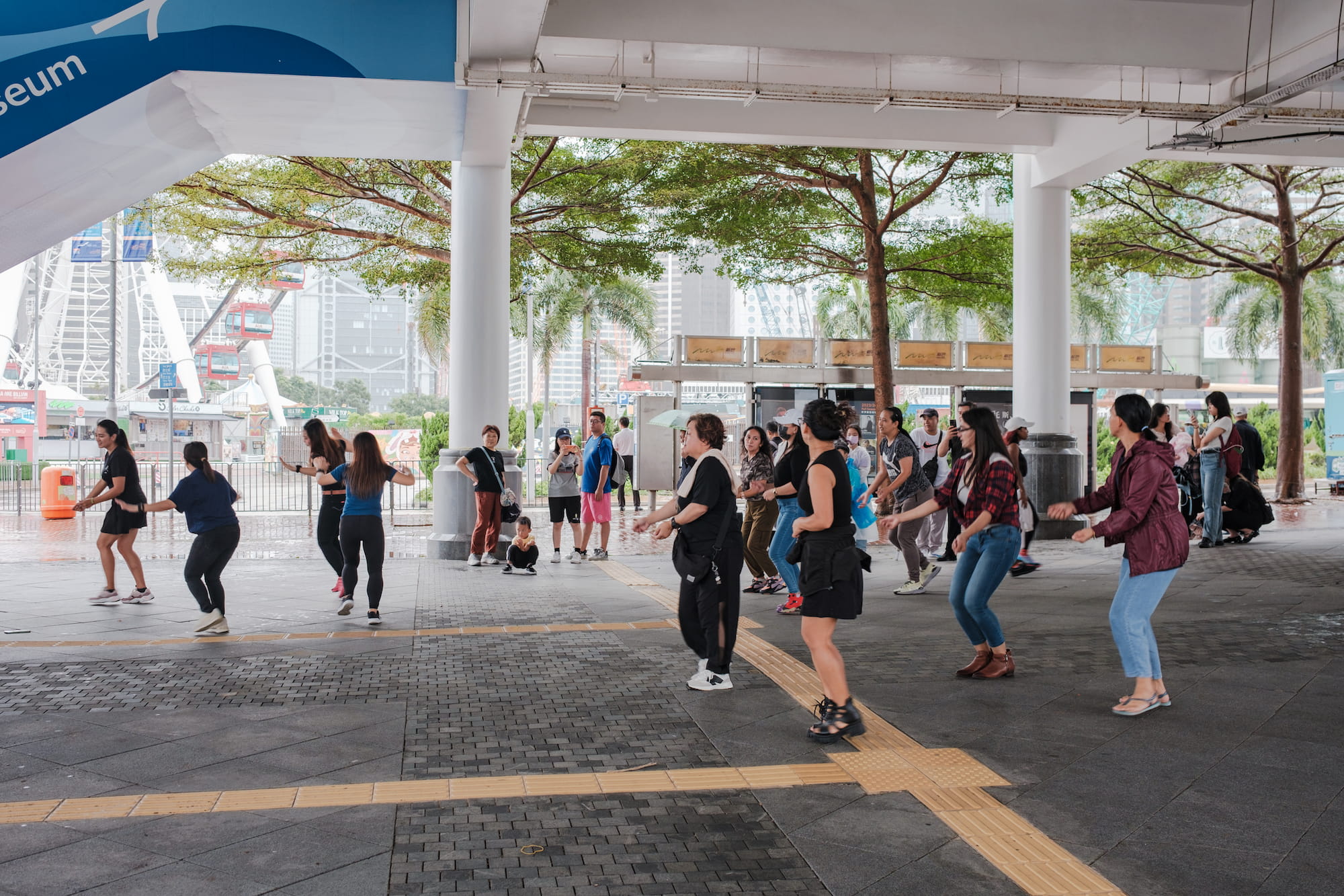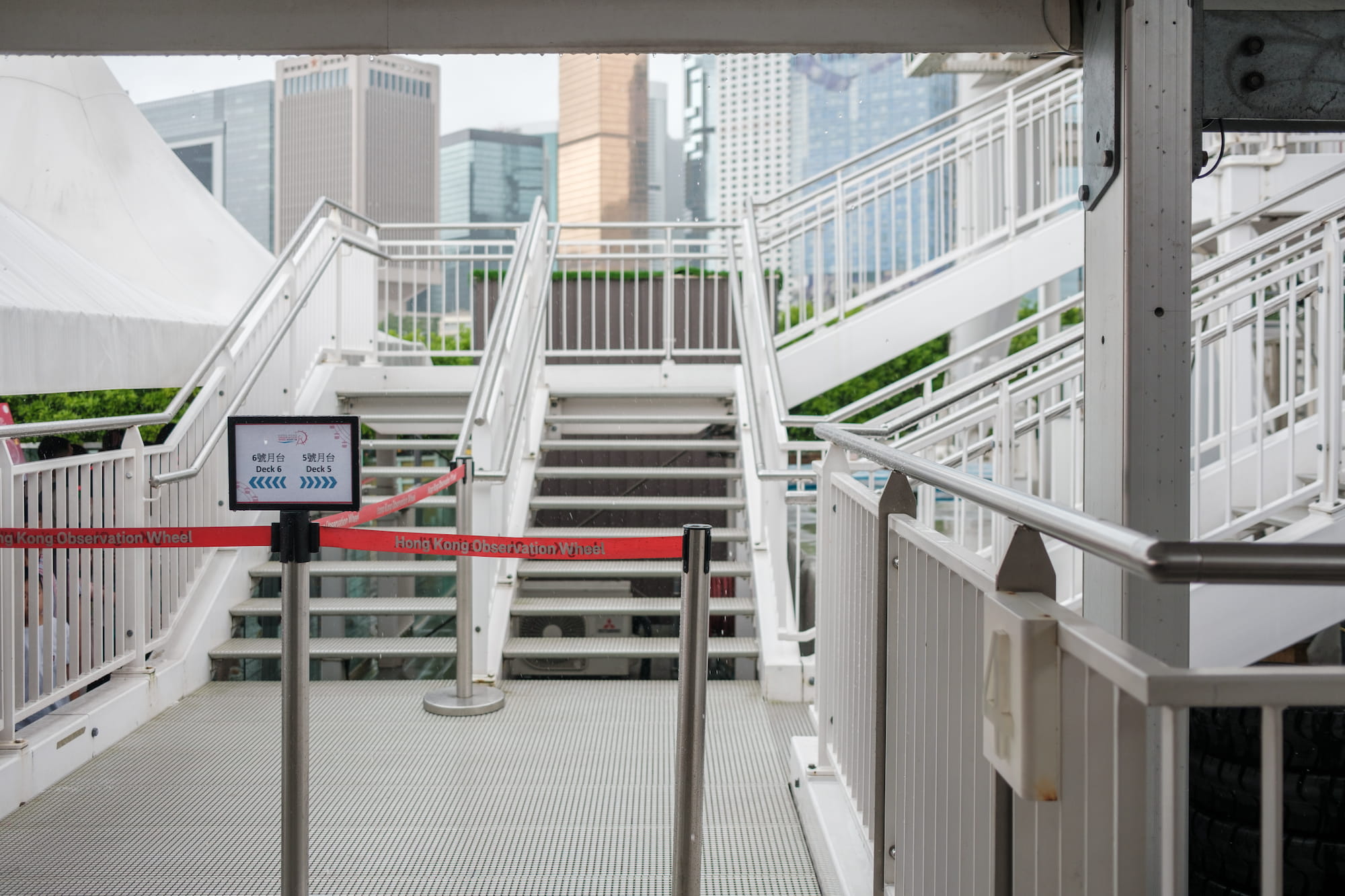 从摩天轮下来,雨势渐大,还好有人行天桥一直从岸边修到了不知道哪个商场。总不能这个时候就打道回府吧,我们于是沿着人行天桥走,看看能遇到什么吧。