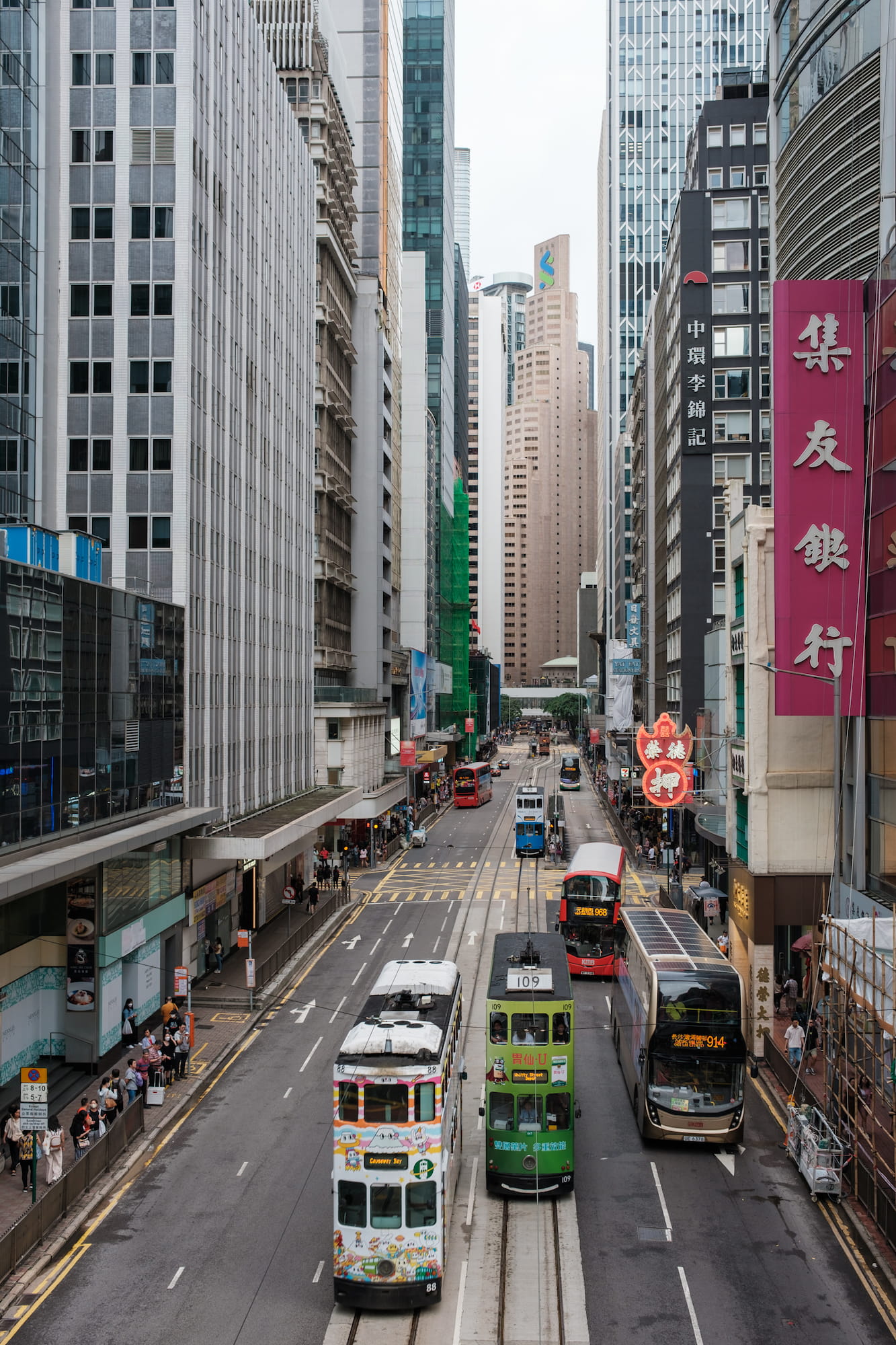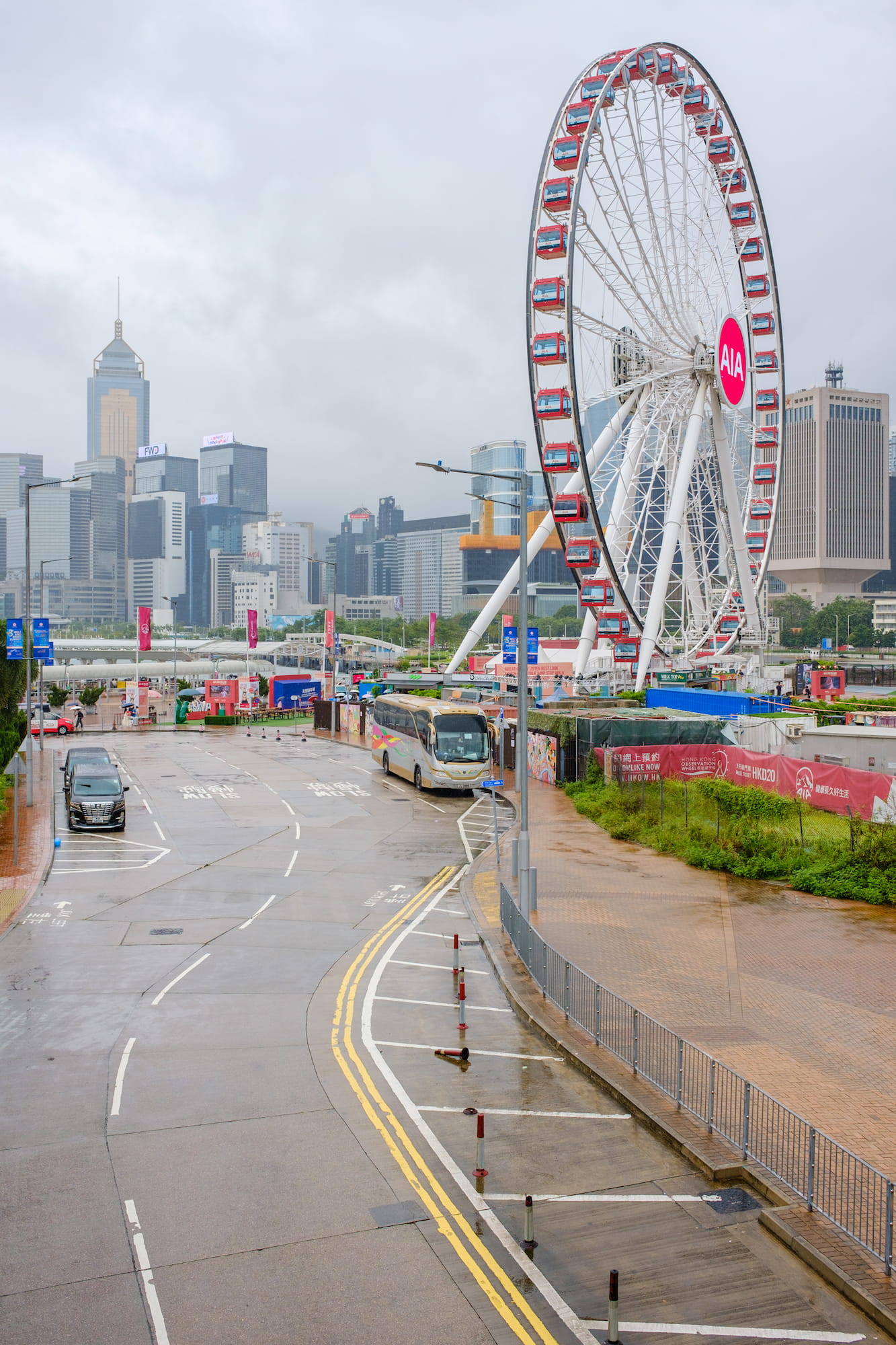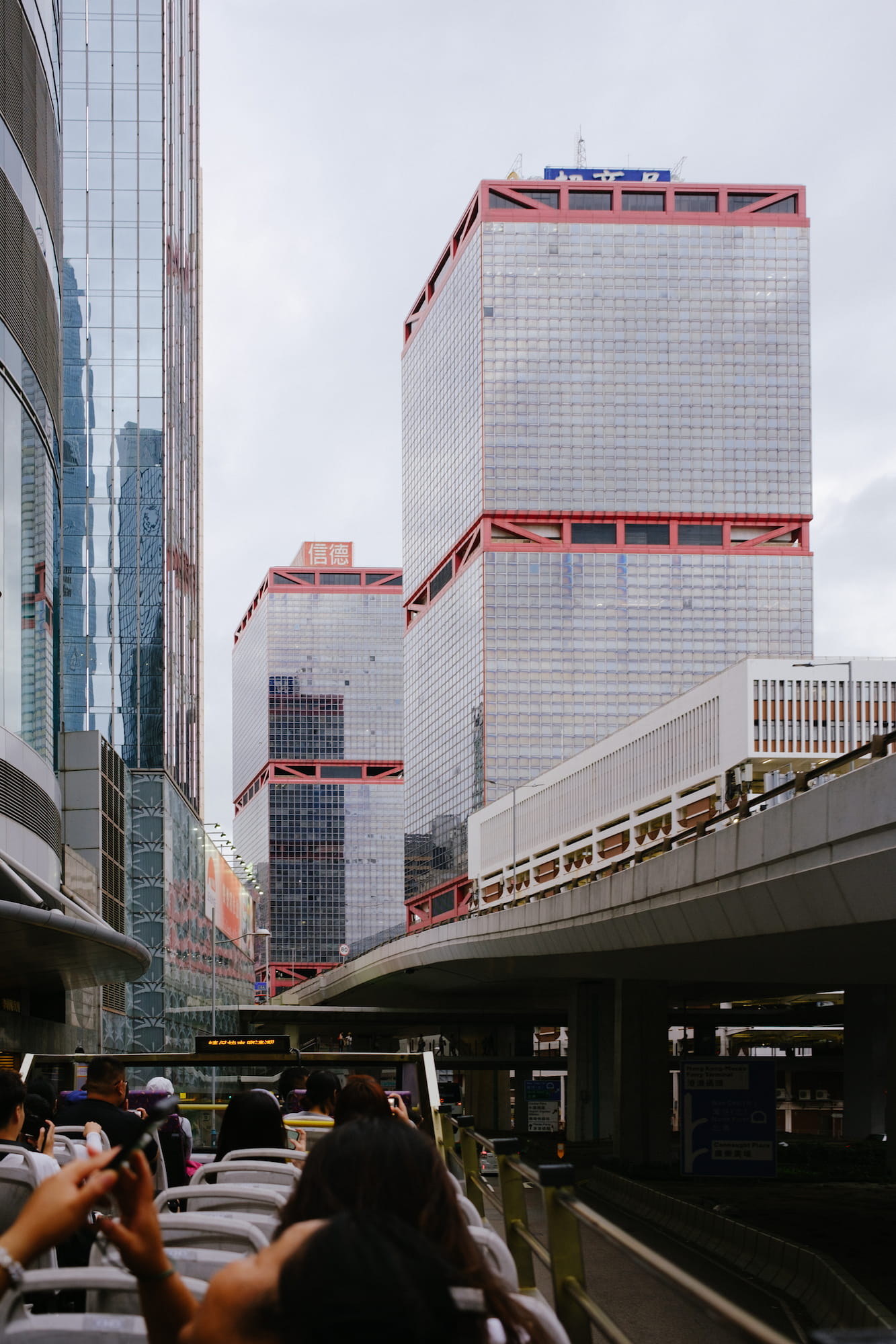 因为雨停了,我们选择搭乘双层巴士从港岛返回尖沙咀,可以让我们走马观花地尽可能多看看这个城市。